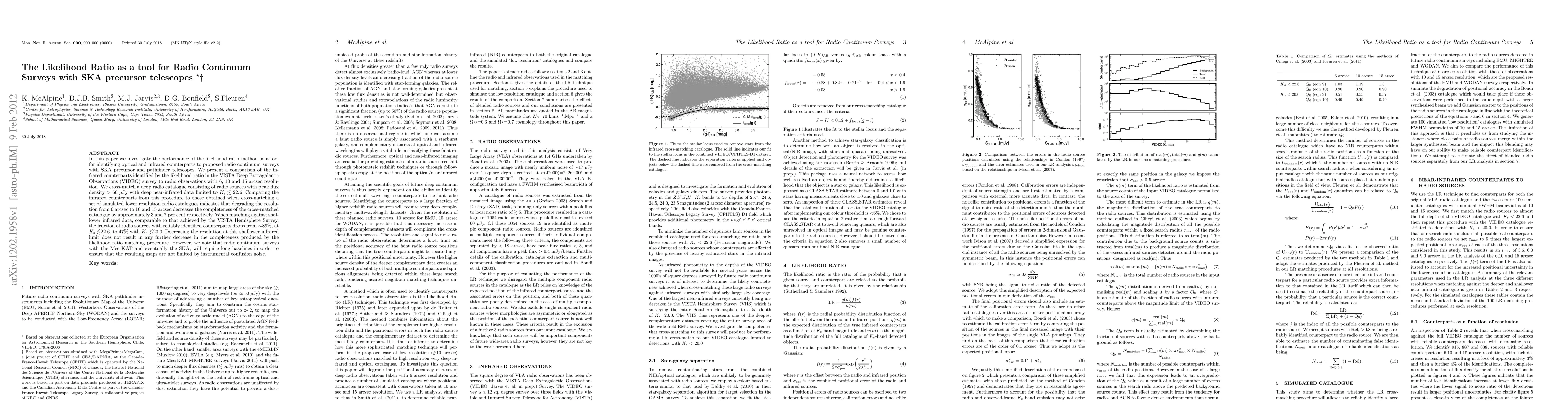 The likelihood ratio method identifies optical/infrared counterparts to radio continuum surveys with SKA precursor telescopes, showing a 3-7% decrease in completeness when resolution is degraded from 6 to 10 or 15 arcseconds.