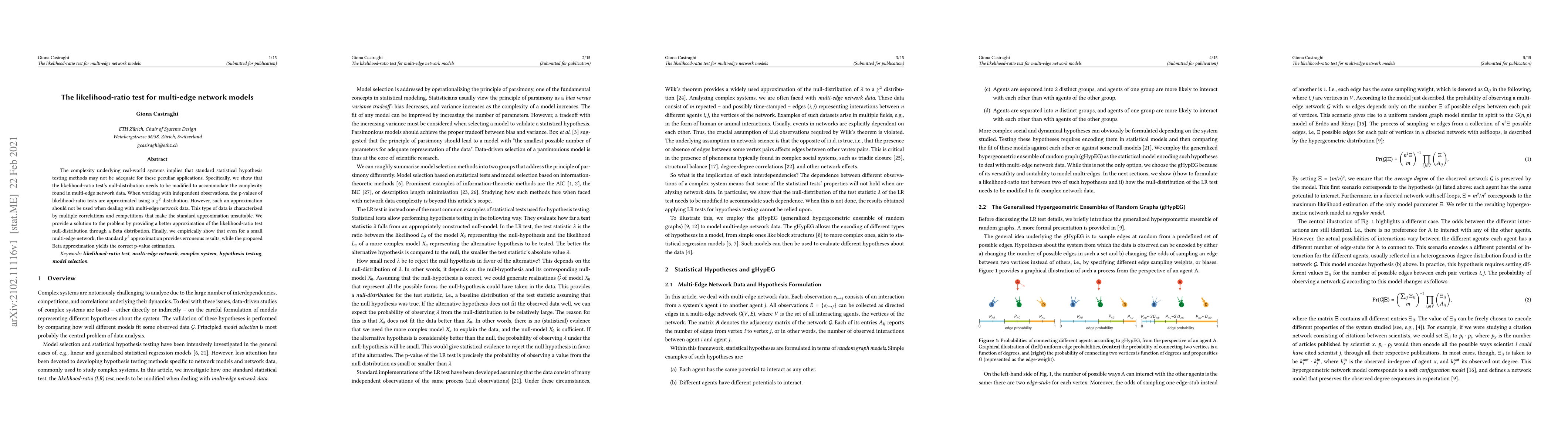 The complexity underlying real-world systems implies that standard statistical hypothesis testing methods may not be adequate for these peculiar applications. Specifically, we show that the likelihood-ratio test's null-distribution needs to be modified to accommodate the complexity found in multi-edge network data. When working with independent observations, the p-values of likelihood-ratio tests are approximated using a $\chi^2$ distribution. However, such an approximation should not be used when dealing with multi-edge network data. This type of data is characterized by multiple correlations and competitions that make the standard approximation unsuitable. We provide a solution to the problem by providing a better approximation of the likelihood-ratio test null-distribution through a Beta distribution. Finally, we empirically show that even for a small multi-edge network, the standard $\chi^2$ approximation provides erroneous results, while the proposed Beta approximation yields the correct p-value estimation.