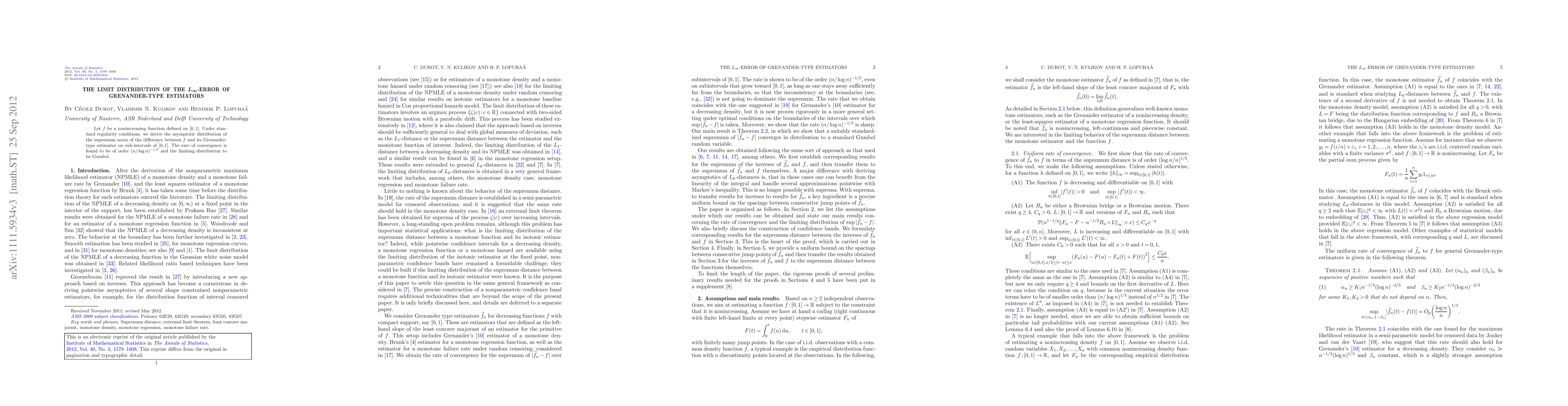 Let $f$ be a nonincreasing function defined on $[0,1]$. Under standard regularity conditions, we derive the asymptotic distribution of the supremum norm of the difference between $f$ and its Grenander-type estimator on sub-intervals of $[0,1]$. The rate of convergence is found to be of order $(n/\log n)^{-1/3}$ and the limiting distribution to be Gumbel.
