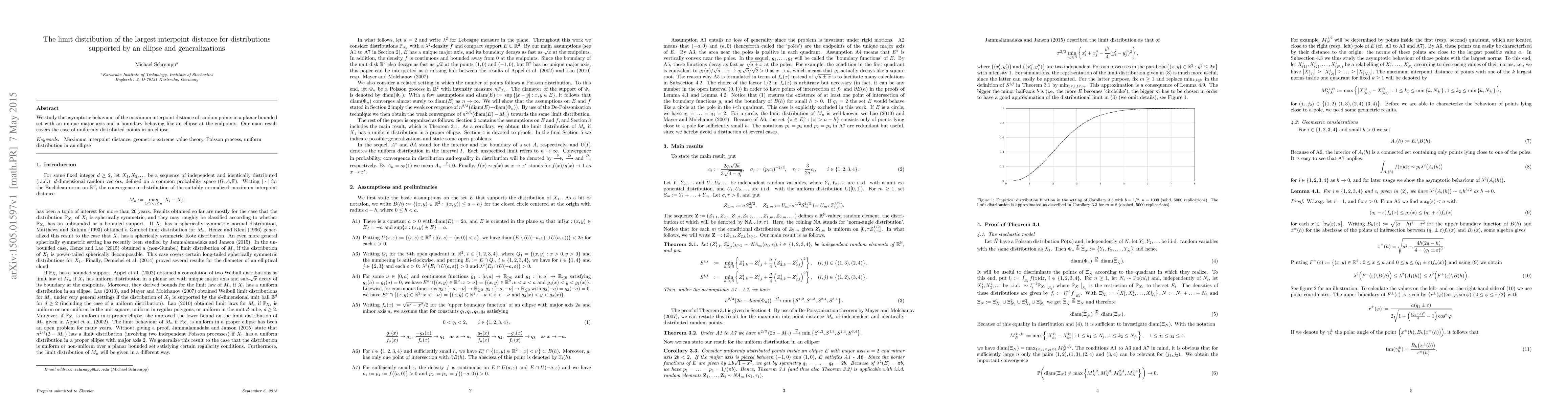 Summary: This paper investigates the asymptotic behavior of the largest interpoint distance for uniformly distributed random points within an ellipse-like planar set, providing a limit distribution for this maximum distance. Generalizations to broader elliptical shapes are also considered.