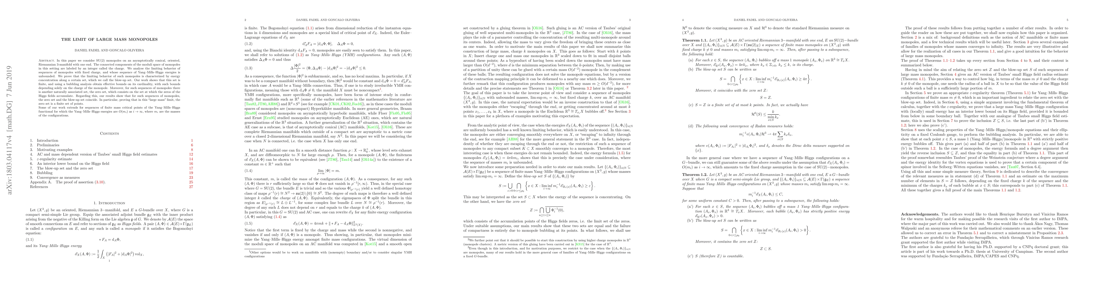 Researchers studied the behavior of massive SU(2) monopoles on a 3-dimensional space with one end, finding that their energy concentration forms a finite set in the limit of large mass.