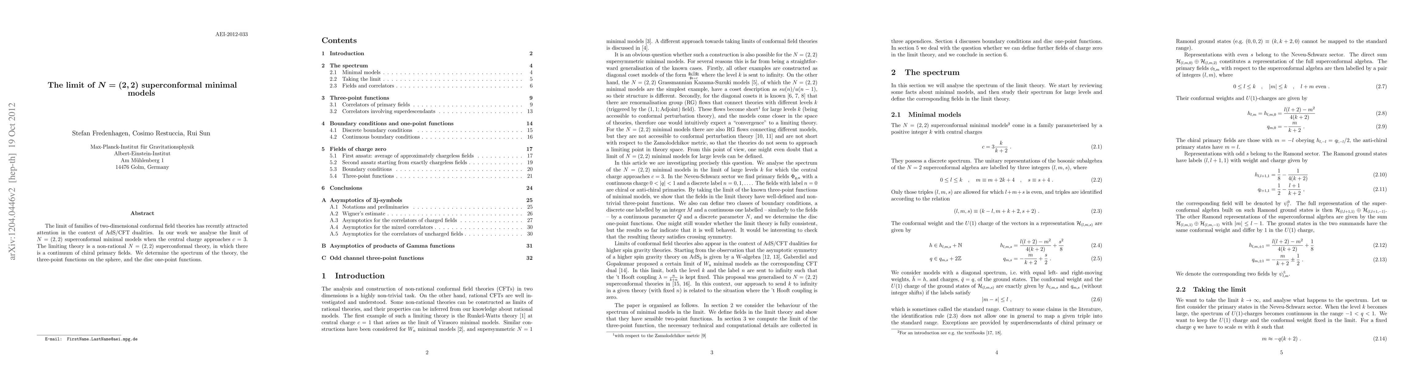 This study investigates the limit of N=(2,2) superconformal minimal models as the central charge approaches c=3, resulting in a non-rational theory with a continuum of chiral primary fields. The researchers determine the spectrum, three-point functions on the sphere, and disc one-point functions of this limiting theory.