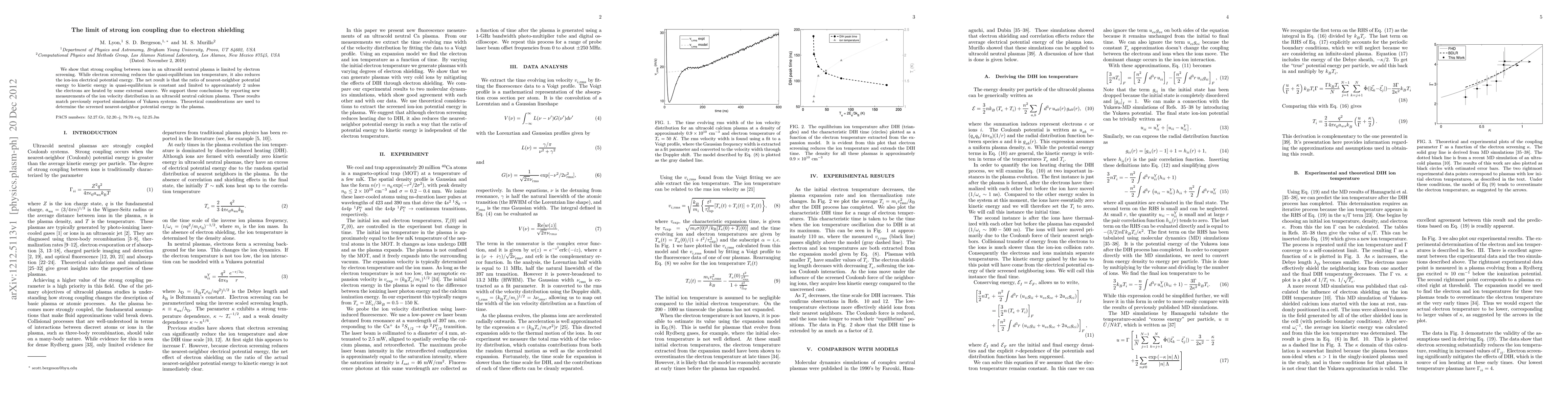 We show that strong coupling between ions in an ultracold neutral plasma is limited by electron screening. While electron screening reduces the quasi-equilibrium ion temperature, it also reduces the ion-ion electrical potential energy. The net result is that the ratio of nearest-neighbor potential energy to kinetic energy in quasi-equilibrium is constant and limited to approximately 2 unless the electrons are heated by some external source. We support these conclusions by reporting new measurements of the ion velocity distribution in an ultracold neutral calcium plasma. These results match previously reported simulations of Yukawa systems. Theoretical considerations are used to determine the screened nearest-neighbor potential energy in the plasma.