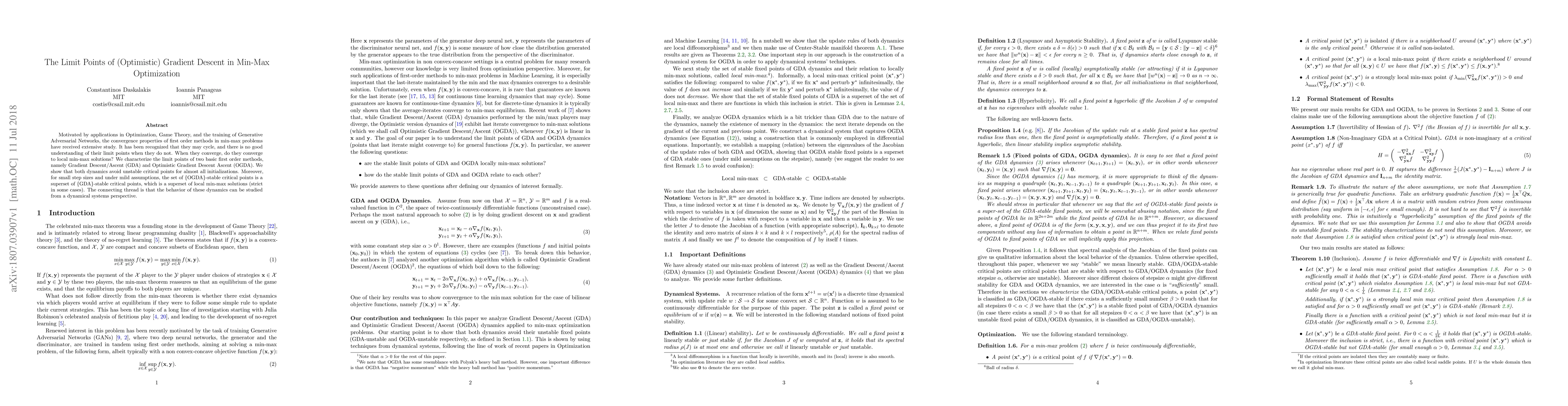 This paper investigates the convergence properties of Gradient Descent/Ascent (GDA) and Optimistic Gradient Descent Ascent (OGDA) in min-max optimization problems. It finds that both methods avoid unstable critical points and, under small step sizes, OGDA can converge to a broader set of stable critical points compared to GDA, which includes local min-max solutions.