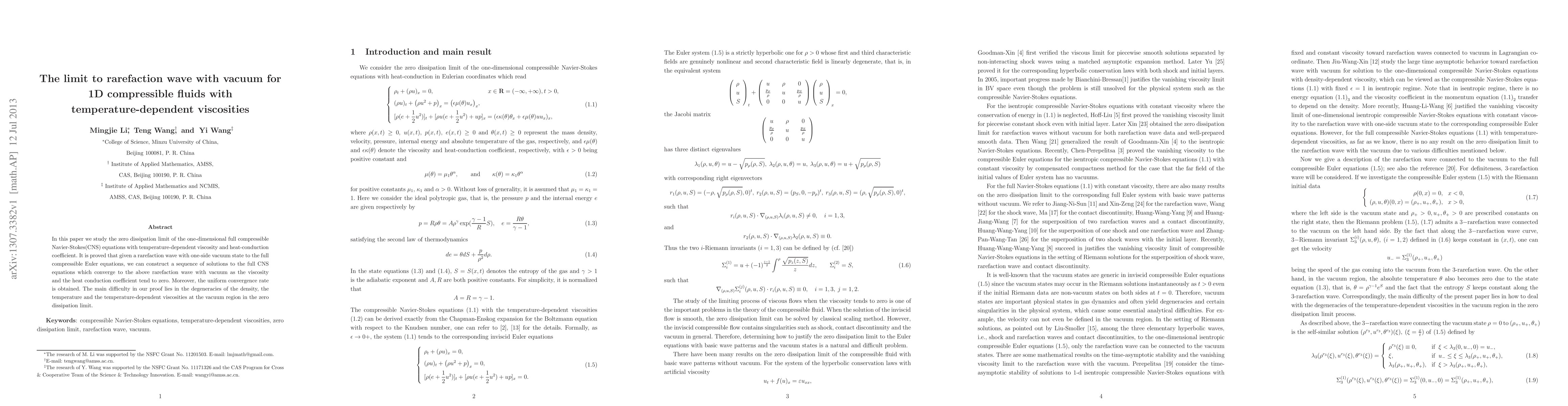 Researchers studied the behavior of rarefaction waves in compressible fluids with temperature-dependent viscosities and heat-conduction coefficients. They found that these waves can converge to a solution as viscosity approaches zero, providing insight into the limits of rarefaction wave behavior.