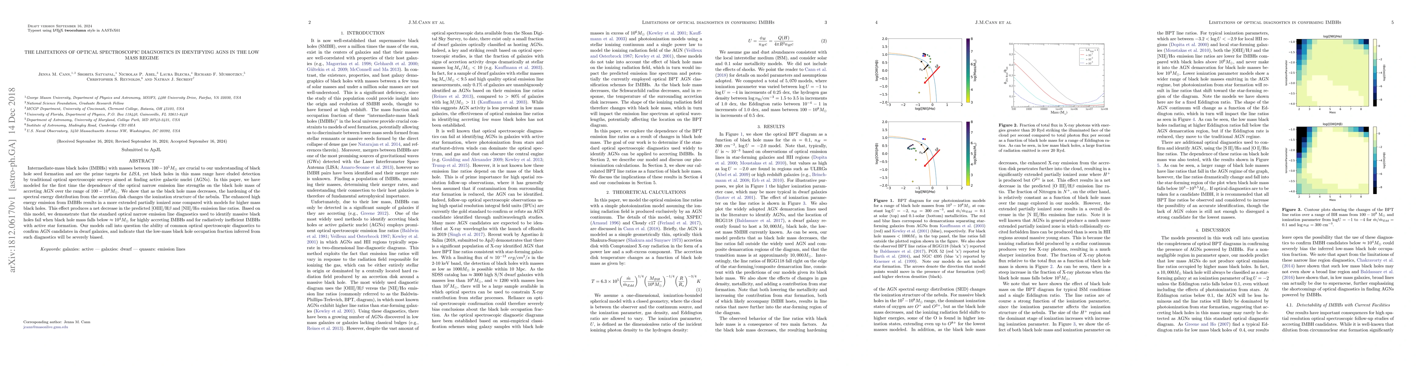 Intermediate-mass black holes (IMBHs) with masses between $100 - 10^5M_{\odot}$ are crucial to our understanding of black hole seed formation and are the prime targets for LISA, yet black holes in this mass range have eluded detection by traditional optical spectroscopic surveys aimed at finding active galactic nuclei (AGNs). In this paper, we have modeled for the first time the dependence of the optical narrow emission line strengths on the black hole mass of accreting AGN over the range of $100-10^8M_{\odot}$. We show that as the black hole mass decreases, the hardening of the spectral energy distribution from the accretion disk changes the ionization structure of the nebula. The enhanced high energy emission from IMBHs results in a more extended partially ionized zone compared with models for higher mass black holes. This effect produces a net decrease in the predicted [OIII]/H$\beta$ and [NII]/H$\alpha$ emission line ratios. Based on this model, we demonstrate that the standard optical narrow emission line diagnostics used to identify massive black holes fail when black hole mass falls below $\approx10^4M_{\odot}$ for highly accreting IMBHs and for radiatively inefficient IMBHs with active star formation. Our models call into question the ability of common optical spectroscopic diagnostics to confirm AGN candidates in dwarf galaxies, and indicate that the low-mass black hole occupation fraction inferred from such diagnostics will be severely biased.