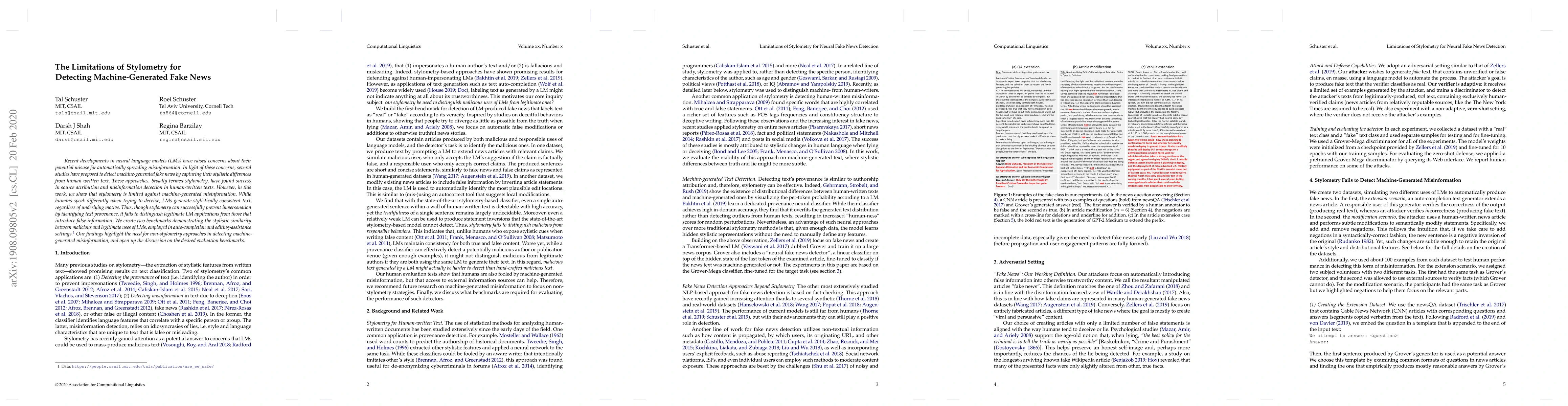 This paper demonstrates that stylometry is ineffective for detecting machine-generated fake news due to the stylistic consistency of neural language models, regardless of their intent to deceive. It calls for alternative methods beyond stylometry to identify misinformation produced by these models.
