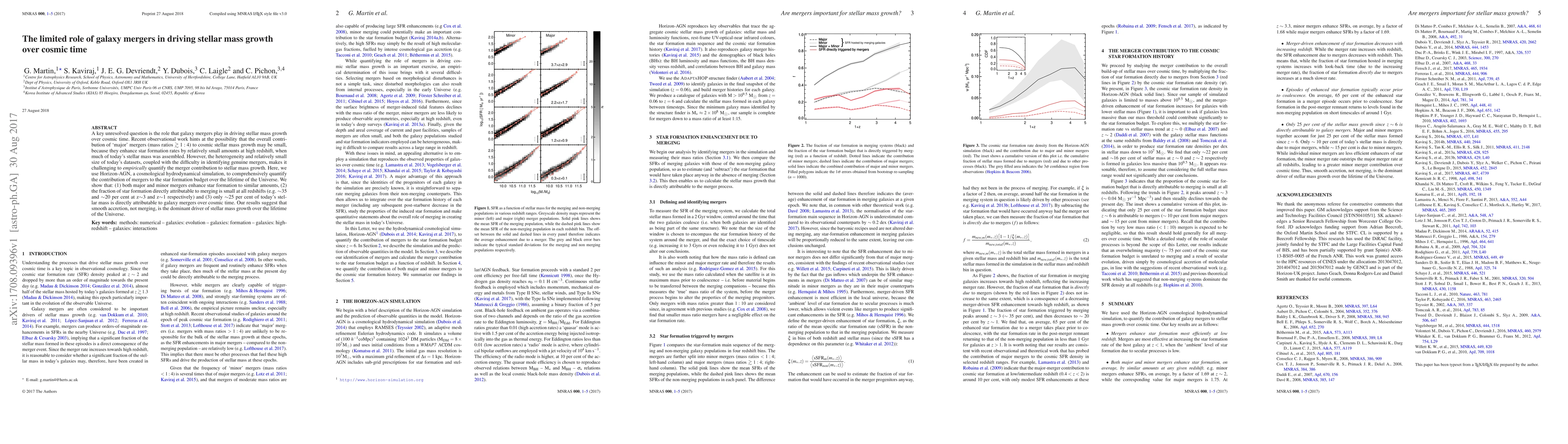 This paper uses a cosmological simulation to show that galaxy mergers contribute only a small fraction to stellar mass growth over cosmic time, with smooth accretion being the dominant driver. The study finds that only about 25% of today's stellar mass is attributable to mergers, indicating their limited role in star formation enhancement.