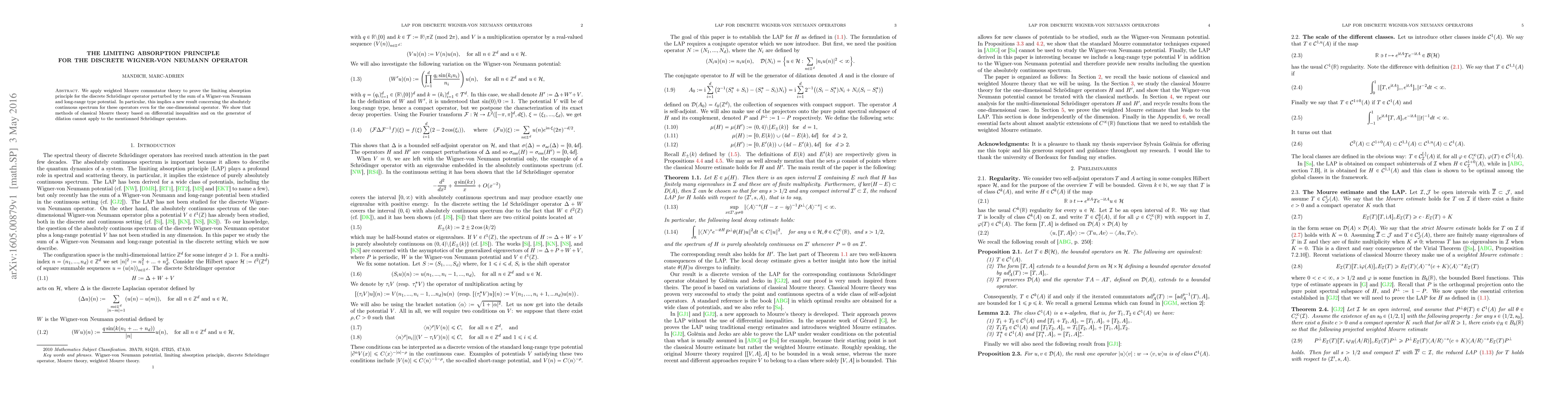 Summary: The paper proves the limiting absorption principle for a discrete Schrödinger operator perturbed by a Wigner-von Neumann potential using weighted Mourre commutator theory, revealing new insights into the absolutely continuous spectrum, even for one-dimensional cases, while showing classical Mourre theory methods are ineffective.
