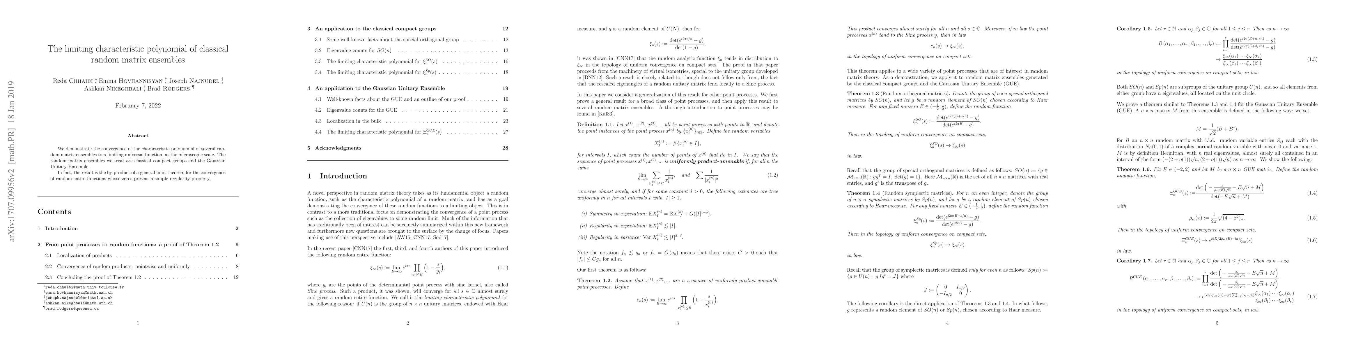 Summary: This paper demonstrates the convergence of the characteristic polynomial of classical random matrix ensembles, such as those from compact groups and the Gaussian Unitary Ensemble, to a universal limiting function at the microscopic scale. The result emerges from a general limit theorem for the convergence of random entire functions with regularly spaced zeros.