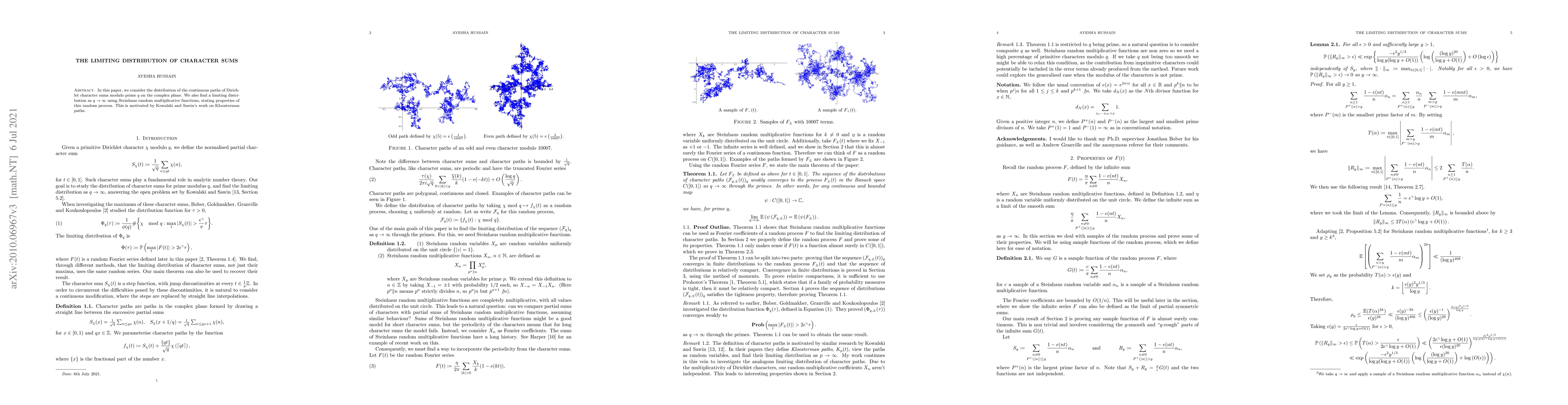 This paper investigates the distribution of Dirichlet character sums modulo prime $q$ and determines a limiting distribution as $q \rightarrow \infty$ using Steinhaus random multiplicative functions, inspired by Kowalski and Sawin's study of Kloosterman paths.