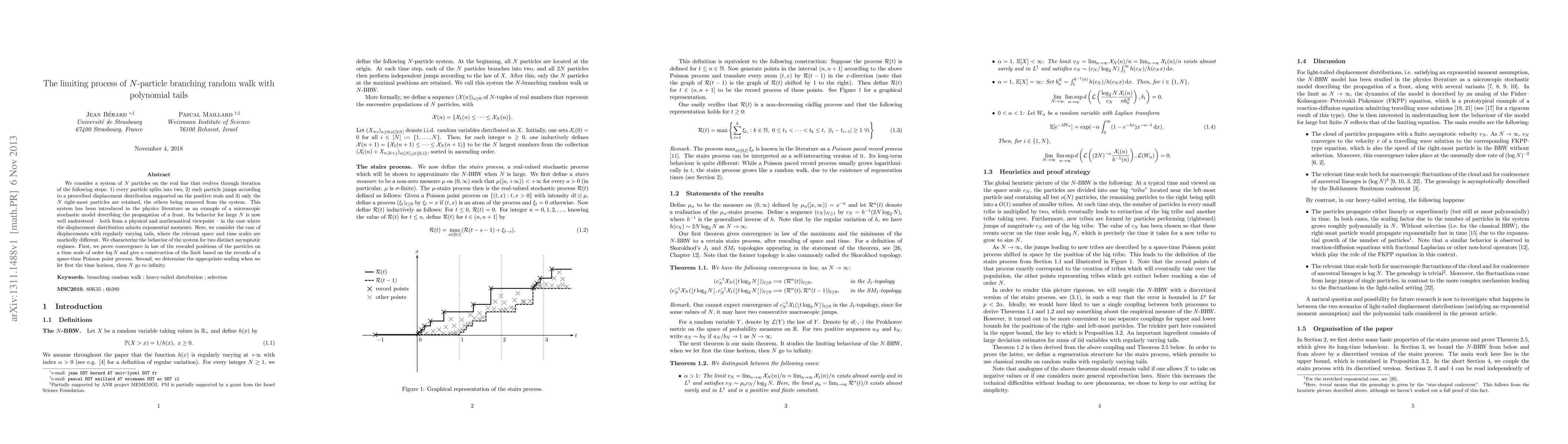 This paper studies the limiting behavior of an $N$-particle branching random walk with polynomial tails, showing convergence in law on a $\log N$ time scale and characterizing the scaling for larger time horizons and particle numbers. The limit is based on records from a space-time Poisson point process.