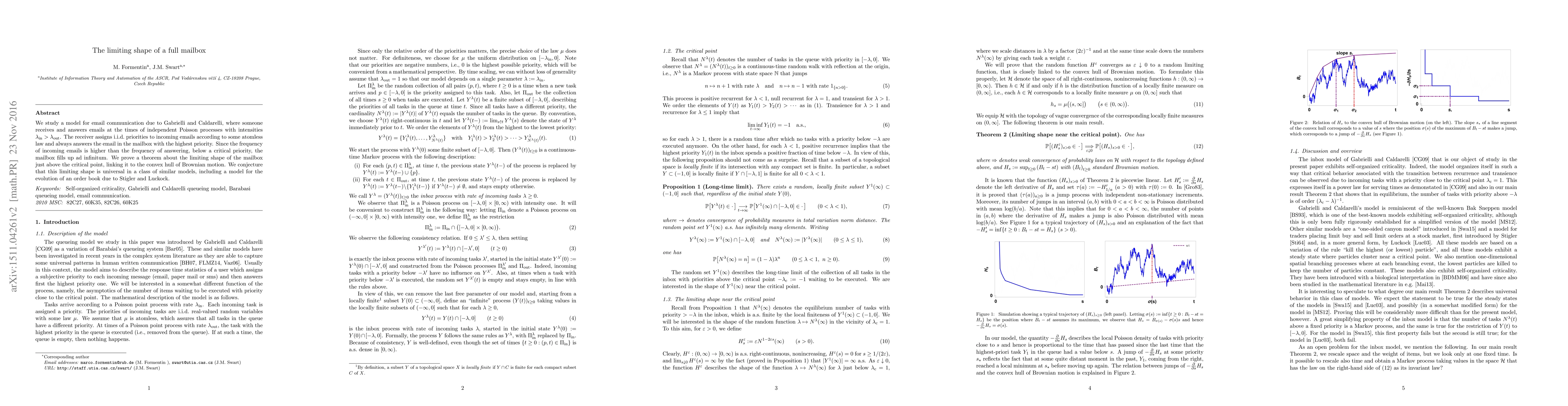 We study a model for email communication due to Gabrielli and Caldarelli, where someone receives and answers emails at the times of independent Poisson processes with intensities $\lambda_{\rm in}>\lambda_{\rm out}$. The receiver assigns i.i.d. priorities to incoming emails according to some atomless law and always answers the email in the mailbox with the highest priority. Since the frequency of incoming emails is higher than the frequency of answering, below a critical priority, the mailbox fills up ad infinitum. We prove a theorem about the limiting shape of the mailbox just above the critical point, linking it to the convex hull of Brownian motion. We conjecture that this limiting shape is universal in a class of similar models, including a model for the evolution of an order book due to Stigler and Luckock.