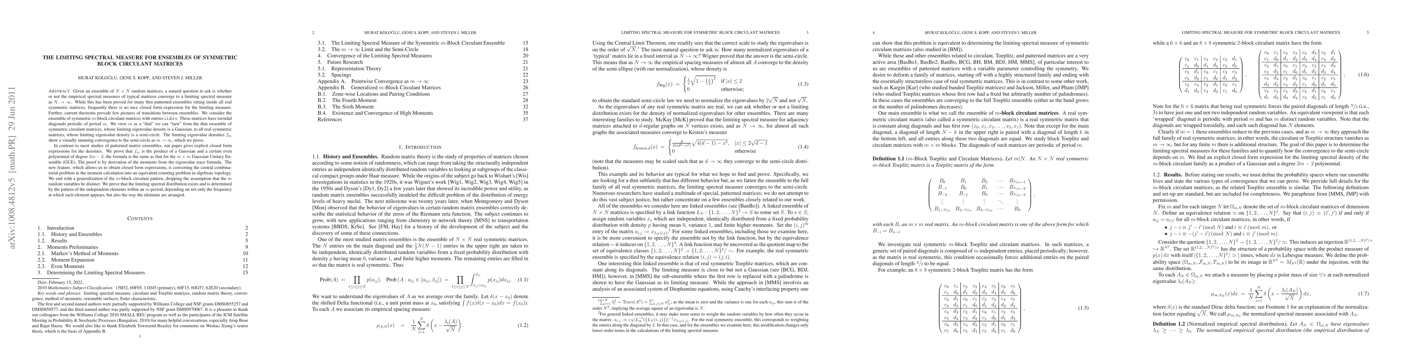 Given an ensemble of NxN random matrices, a natural question to ask is whether or not the empirical spectral measures of typical matrices converge to a limiting spectral measure as N --> oo. While this has been proved for many thin patterned ensembles sitting inside all real symmetric matrices, frequently there is no nice closed form expression for the limiting measure. Further, current theorems provide few pictures of transitions between ensembles. We consider the ensemble of symmetric m-block circulant matrices with entries i.i.d.r.v. These matrices have toroidal diagonals periodic of period m. We view m as a "dial" we can "turn" from the thin ensemble of symmetric circulant matrices, whose limiting eigenvalue density is a Gaussian, to all real symmetric matrices, whose limiting eigenvalue density is a semi-circle. The limiting eigenvalue densities f_m show a visually stunning convergence to the semi-circle as m tends to infinity, which we prove. In contrast to most studies of patterned matrix ensembles, our paper gives explicit closed form expressions for the densities. We prove that f_m is the product of a Gaussian and a degree 2m-2 polynomial; the formula equals that of the m x m Gaussian Unitary Ensemble (GUE). The proof is by the moments. The new feature, which allows us to obtain closed form expressions, is converting the central combinatorial problem in the moment calculation into an equivalent counting problem in algebraic topology. We end with a generalization of the m-block circulant pattern, dropping the assumption that the m random variables be distinct. We prove that the limiting spectral distribution exists and is determined by the pattern of the independent elements within an m-period, depending on not only the frequency at which each element appears, but also the way the elements are arranged.