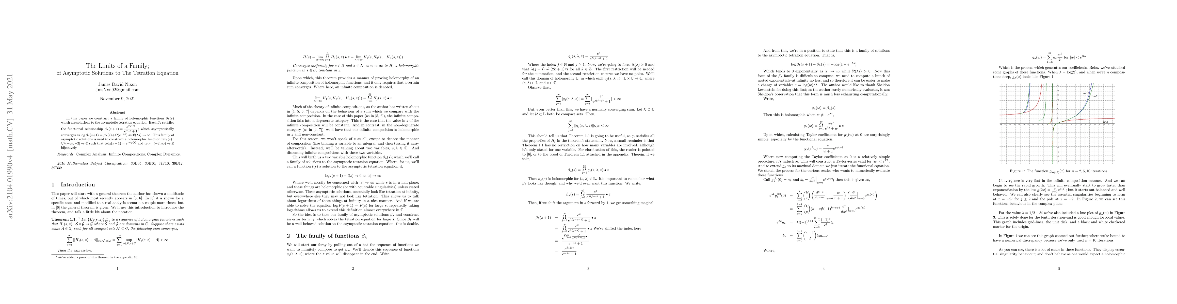 In this paper we construct a family of holomorphic functions $\beta_\lambda (s)$ which are solutions to the asymptotic tetration equation. Each $\beta_\lambda$ satisfies the functional relationship ${\displaystyle \beta_\lambda(s+1) = \frac{e^{\beta_\lambda(s)}}{e^{-\lambda s} + 1}}$; which asymptotically converges as $\log \beta_\lambda(s+1) = \beta_\lambda (s) + \mathcal{O}(e^{-\lambda s})$ as $\Re(\lambda s) \to \infty$. This family of asymptotic solutions is used to construct a holomorphic function $\text{tet}_\beta(s) : \mathbb{C}/(-\infty,-2] \to \mathbb{C}$ such that $\text{tet}_\beta(s+1) = e^{\text{tet}_\beta(s)}$ and $\text{tet}_\beta : (-2,\infty) \to \mathbb{R}$ bijectively.
