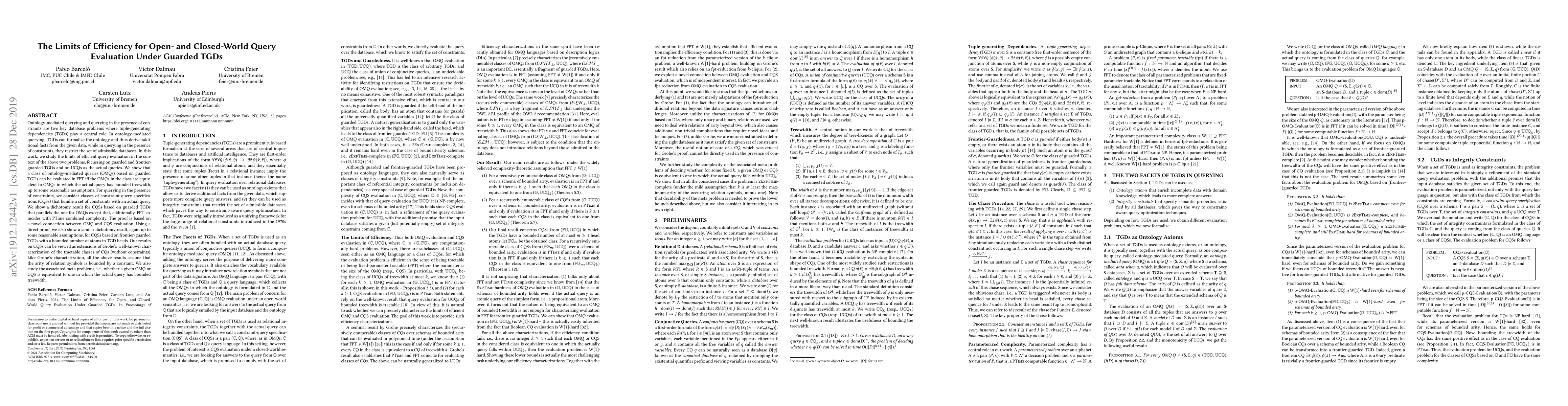 Ontology-mediated querying and querying in the presence of constraints are two key database problems where tuple-generating dependencies (TGDs) play a central role. In ontology-mediated querying, TGDs can formalize the ontology and thus derive additional facts from the given data, while in querying in the presence of constraints, they restrict the set of admissible databases. In this work, we study the limits of efficient query evaluation in the context of the above two problems, focussing on guarded and frontier-guarded TGDs and on UCQs as the actual queries. We show that a class of ontology-mediated queries (OMQs) based on guarded TGDs can be evaluated in FPT iff the OMQs in the class are equivalent to OMQs in which the actual query has bounded treewidth, up to some reasonable assumptions. For querying in the presence of constraints, we consider classes of constraint-query specifications (CQSs) that bundle a set of constraints with an actual query. We show a dichotomy result for CQSs based on guarded TGDs that parallels the one for OMQs except that, additionally, FPT coincides with PTime combined complexity. The proof is based on a novel connection between OMQ and CQS evaluation. Using a direct proof, we also show a similar dichotomy result, again up to some reasonable assumptions, for CQSs based on frontier-guarded TGDs with a bounded number of atoms in TGD heads. Our results on CQSs can be viewed as extensions of Grohe's well-known characterization of the tractable classes of CQs (without constraints). Like Grohe's characterization, all the above results assume that the arity of relation symbols is bounded by a constant. We also study the associated meta problems, i.e., whether a given OMQ or CQS is equivalent to one in which the actual query has bounded treewidth.