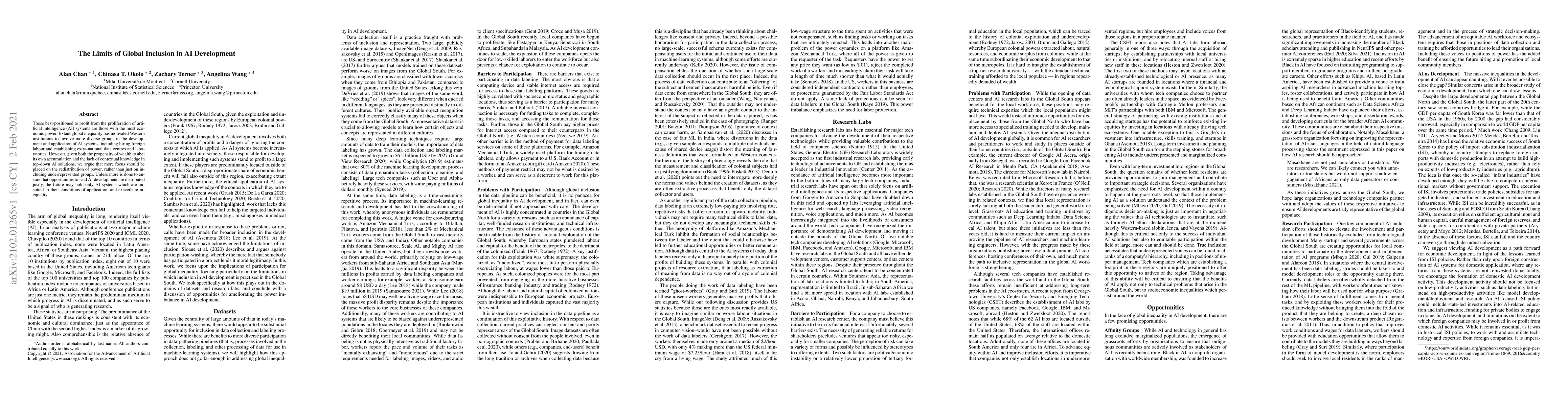 The paper argues that while efforts to include diverse groups in AI development are commendable, they are insufficient. It emphasizes the need for power redistribution to prevent AI systems from exacerbating global inequality due to the current trend of wealth concentration and lack of contextual understanding in top-down AI solutions.