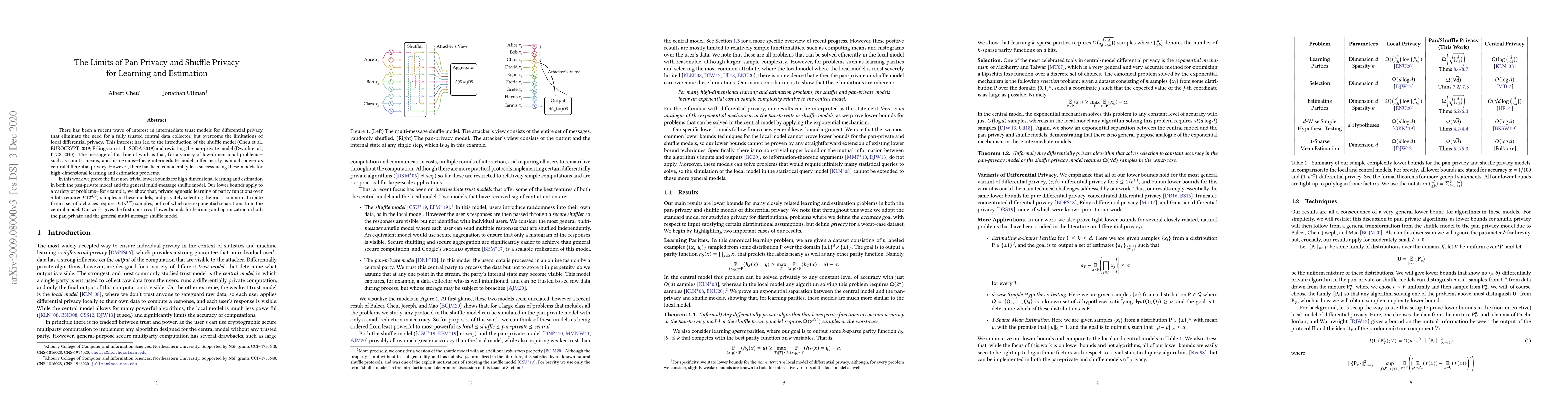 There has been a recent wave of interest in intermediate trust models for differential privacy that eliminate the need for a fully trusted central data collector, but overcome the limitations of local differential privacy. This interest has led to the introduction of the shuffle model (Cheu et al., EUROCRYPT 2019; Erlingsson et al., SODA 2019) and revisiting the pan-private model (Dwork et al., ITCS 2010). The message of this line of work is that, for a variety of low-dimensional problems -- such as counts, means, and histograms -- these intermediate models offer nearly as much power as central differential privacy. However, there has been considerably less success using these models for high-dimensional learning and estimation problems. In this work, we show that, for a variety of high-dimensional learning and estimation problems, both the shuffle model and the pan-private model inherently incur an exponential price in sample complexity relative to the central model. For example, we show that, private agnostic learning of parity functions over $d$ bits requires $\Omega(2^{d/2})$ samples in these models, and privately selecting the most common attribute from a set of $d$ choices requires $\Omega(d^{1/2})$ samples, both of which are exponential separations from the central model. Our work gives the first non-trivial lower bounds for these problems for both the pan-private model and the general multi-message shuffle model.