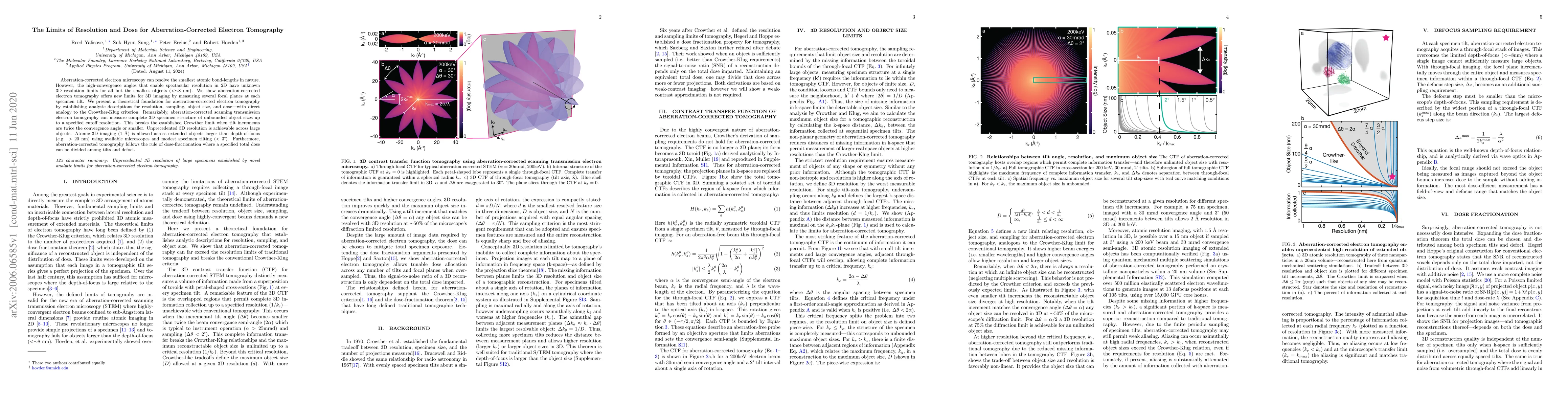 This paper explores the resolution limits and dose requirements for aberration-corrected electron tomography, revealing unprecedented 3D resolution for large objects by overcoming the Crowther limit through advanced tilt techniques. It establishes a theoretical framework for 3D imaging, demonstrating that atomic resolution can be achieved across extended objects using available microscopes.