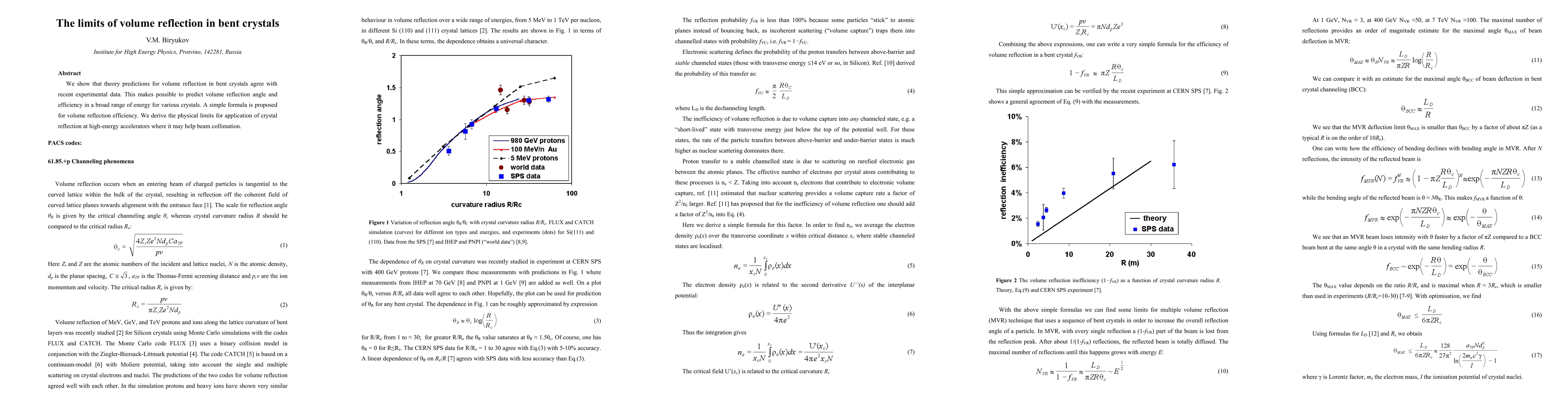 The research confirms theoretical predictions for volume reflection in bent crystals, aligning with recent experimental data, and proposes a formula for predicting reflection efficiency across a wide energy range. It also identifies the physical limits for using crystal reflection in high-energy accelerators for beam collimation.