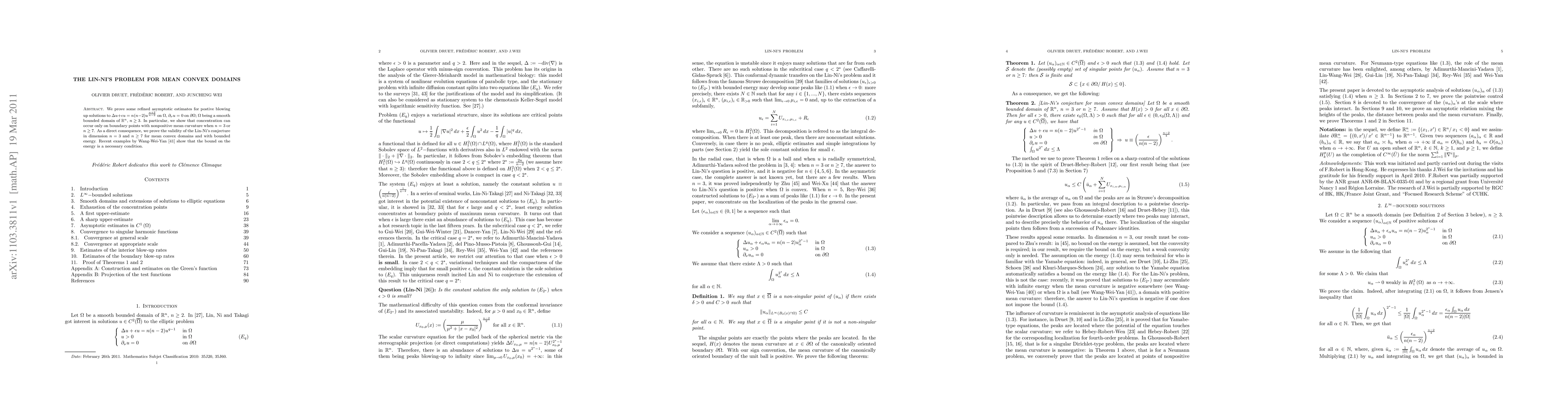 This research paper presents refined asymptotic estimates for positive blowing up solutions of a specific partial differential equation in smooth bounded domains of n-dimensional space (n≥3). The study reveals that concentration of these solutions occurs only at boundary points with nonpositive mean curvature for dimensions n=3 and n≥7, thus confirming the Lin-Ni conjecture for mean convex domains and bounded energy. The paper also acknowledges that energy boundedness is a necessary condition, as demonstrated by recent examples.
