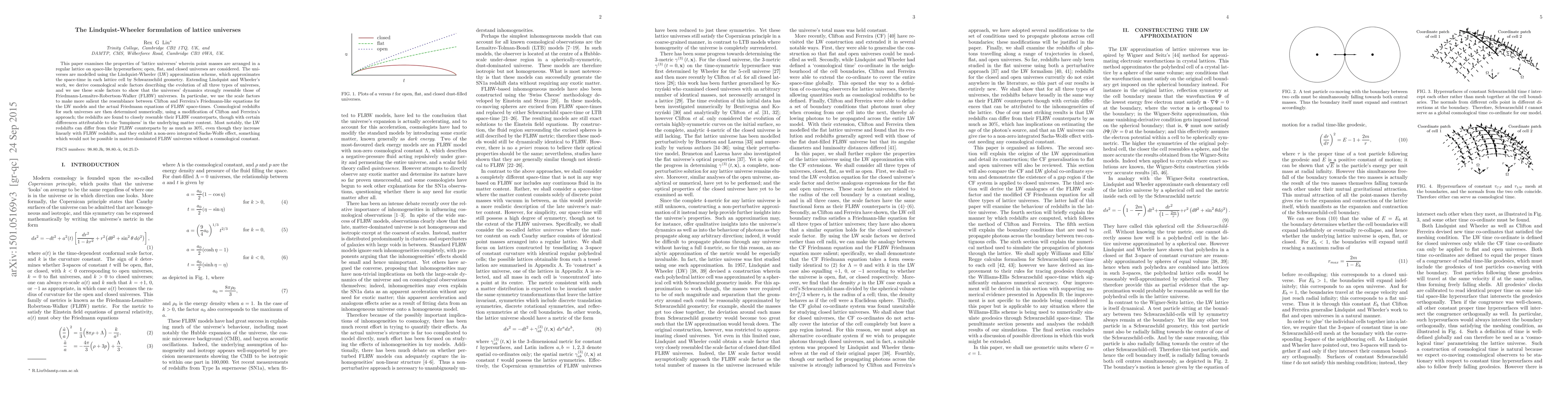 This paper explores the dynamics of lattice universes using the Lindquist-Wheeler (LW) approximation, showing their resemblance to Friedmann-Lemaître-Robertson-Walker (FLRW) universes through derived cosmological scale factors and redshifts. The LW universes exhibit similar redshift behavior but can differ by up to 30% due to their lumpy matter distribution.
