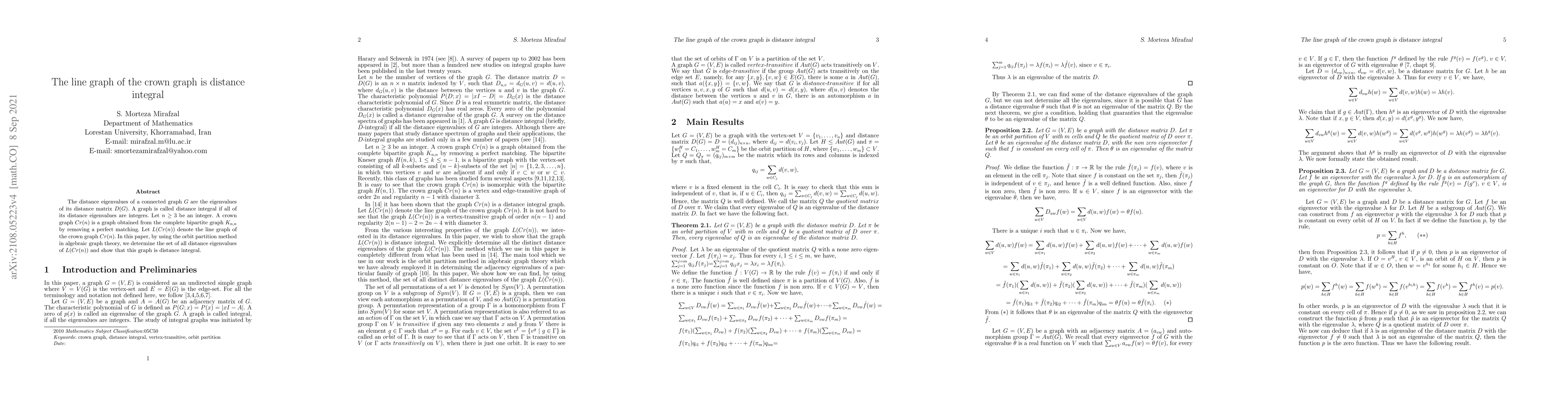 This paper uses algebraic graph theory's orbit partition method to prove that the line graph of a crown graph, denoted as L(Cr(n)), is distance integral. It identifies all distance eigenvalues of L(Cr(n)), confirming they are integers.