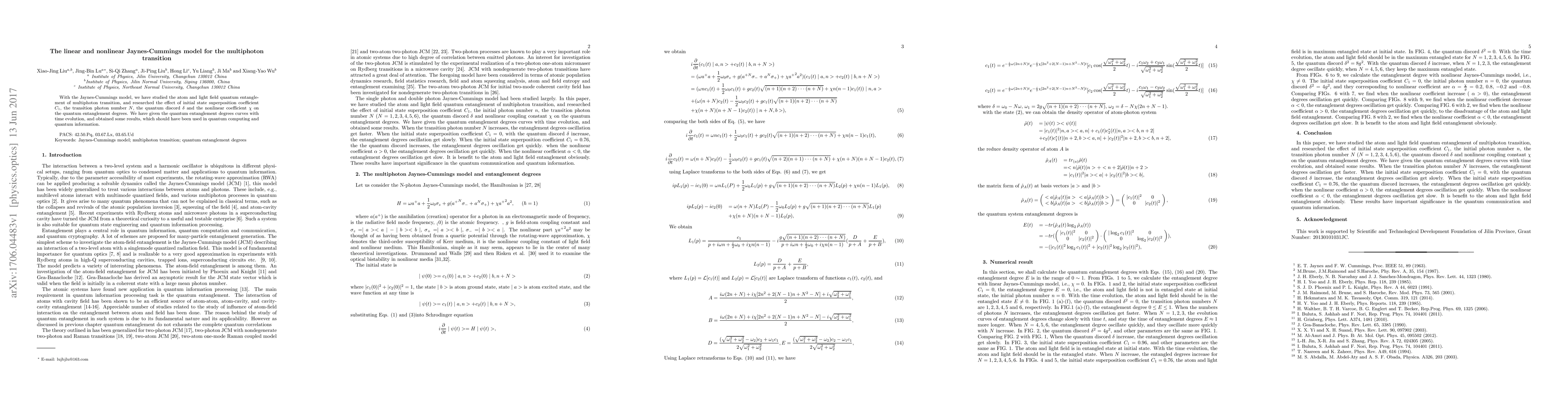 This paper investigates the quantum entanglement in the Jaynes-Cummings model during multiphoton transitions, analyzing the effects of initial state superposition, transition photon number, quantum discord, and a nonlinear coefficient on entanglement degrees. The study provides time-evolution curves for these entanglement degrees, with implications for quantum computing and information.