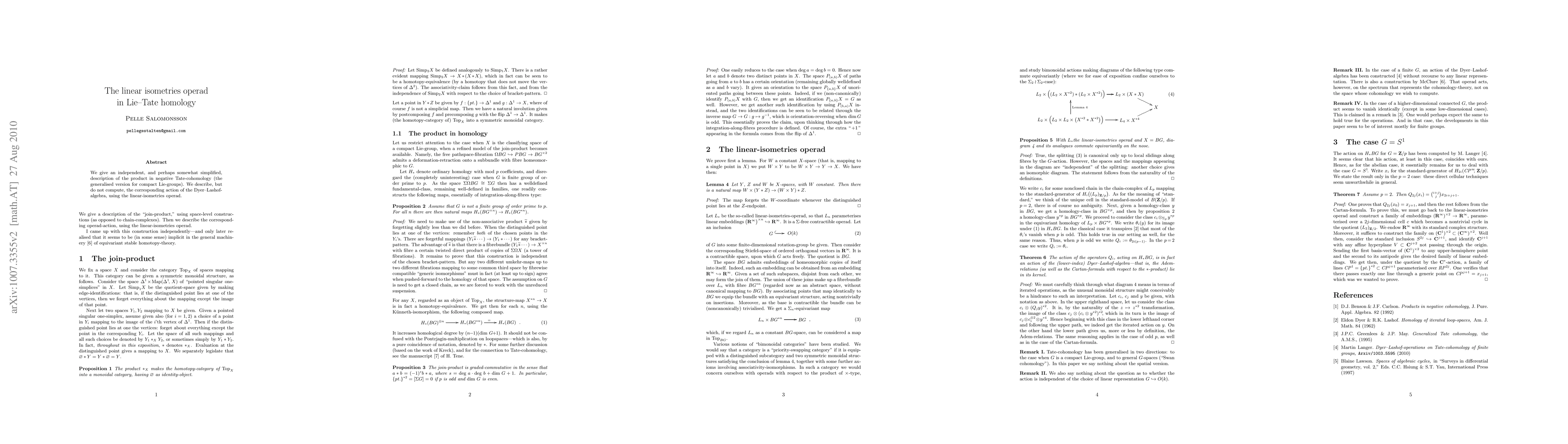 We give an independent, and perhaps somewhat simplified, description of the product in negative Tate-cohomology (the generalised version for compact Lie-groups). We describe, but do not compute, the corresponding action of the Dyer--Lashof-algebra, using the linear-isometries operad.