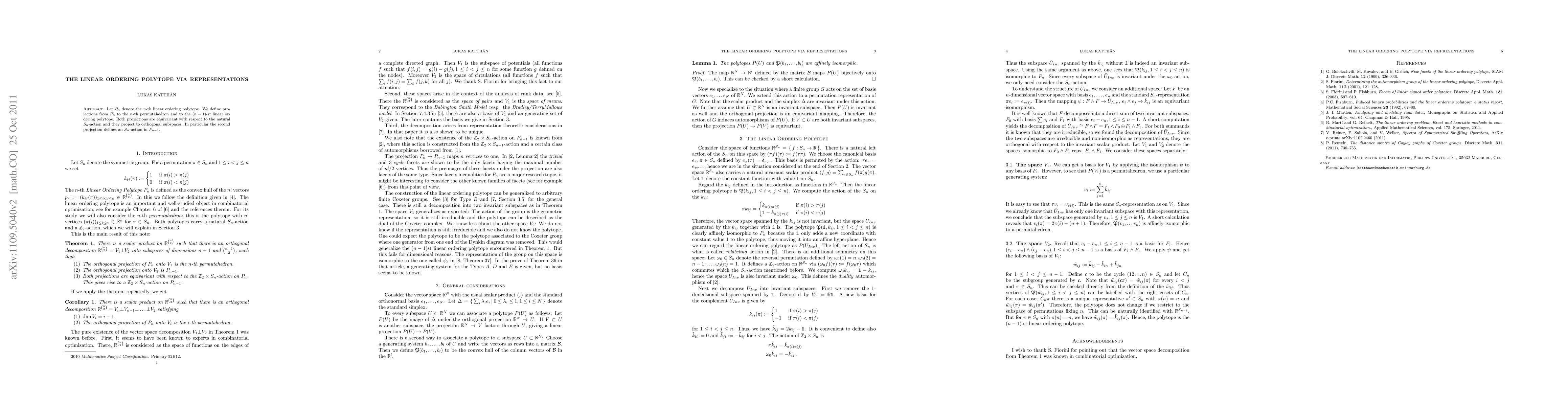 Let $P_n$ denote the $n$-th linear ordering polytope. We define projections from $P_n$ to the $n$-th permutahedron and to the $(n-1)$-st linear ordering polytope. Both projections are equivariant with respect to the natural $\Sn$-action and they project to orthogonal subspaces. In particular the second projection defines an $S_n$-action in $P_{n-1}$.