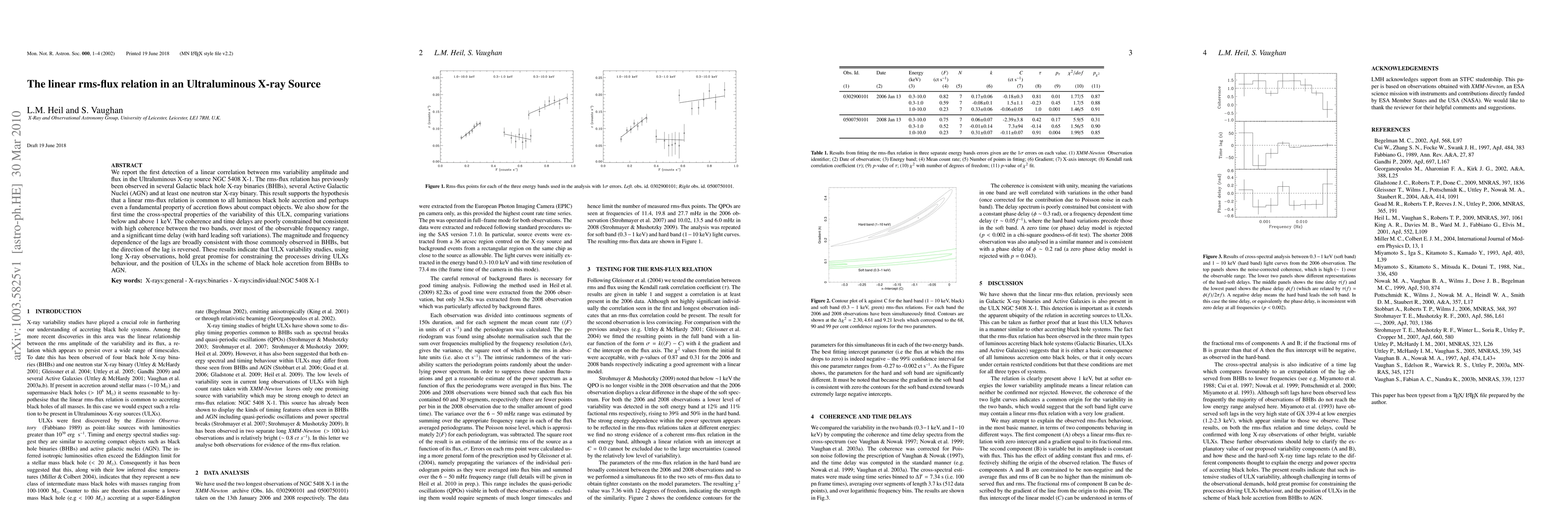 This paper reports the first detection of a linear rms-flux relation in the Ultraluminous X-ray source NGC 5408 X-1, supporting the hypothesis that such a relation is common across various black hole accretion systems. It also investigates the cross-spectral properties of the source's variability, finding high coherence and a time delay consistent with hard X-rays leading soft variations.