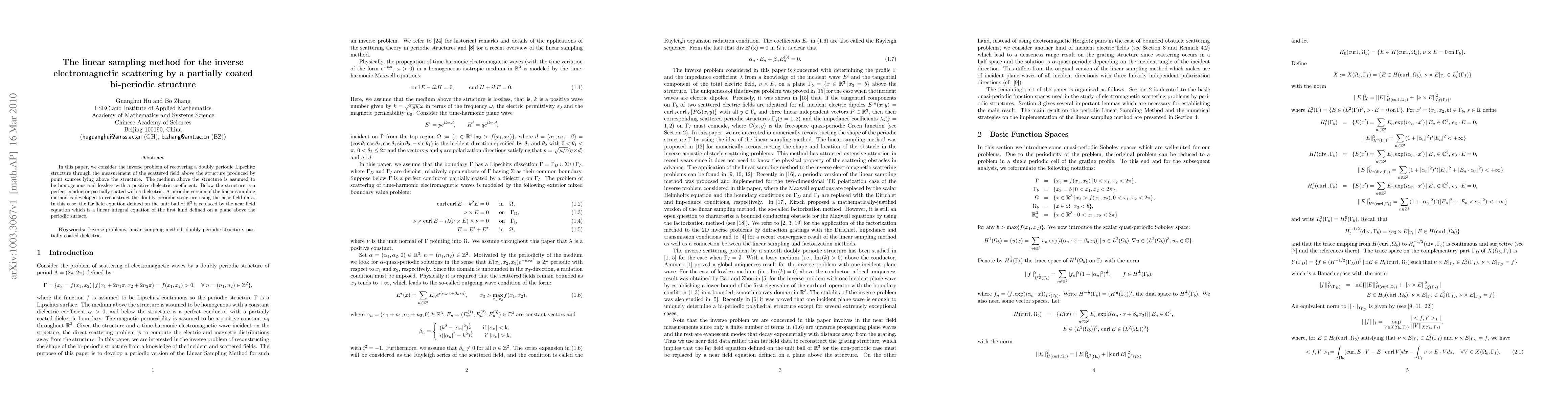 Researchers developed a method to reconstruct a partially coated bi-periodic structure from scattered electromagnetic field data above it, using linear sampling techniques.
