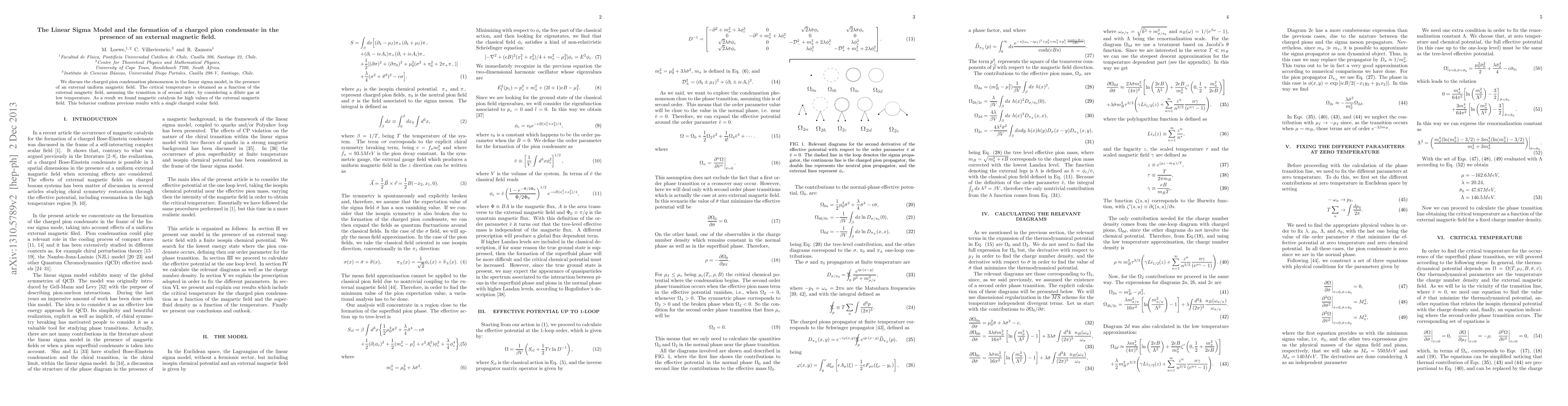 This paper explores charged pion condensation in the linear sigma model under an external magnetic field, finding that lower magnetic fields inhibit condensation while higher fields promote it, confirming earlier findings with a single charged scalar field.