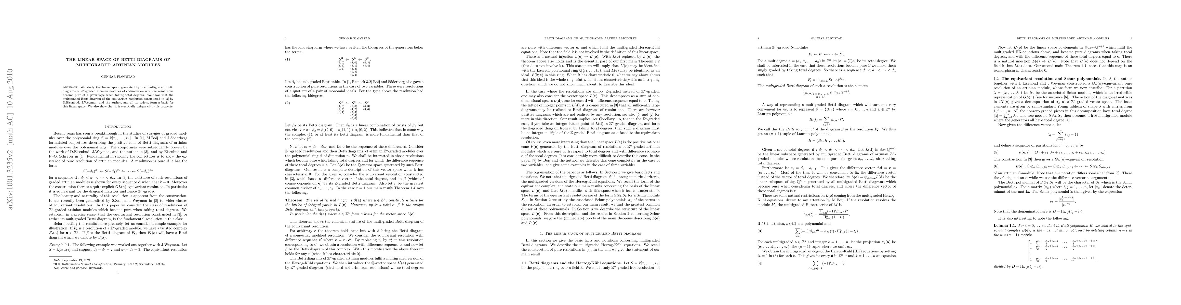 This paper explores the linear space formed by multigraded Betti diagrams of Z^n-graded artinian modules, demonstrating that the equivariant resolution basis constructed by Eisenbud, Weyman, and the author, along with its twists, serves as a basis for this space.