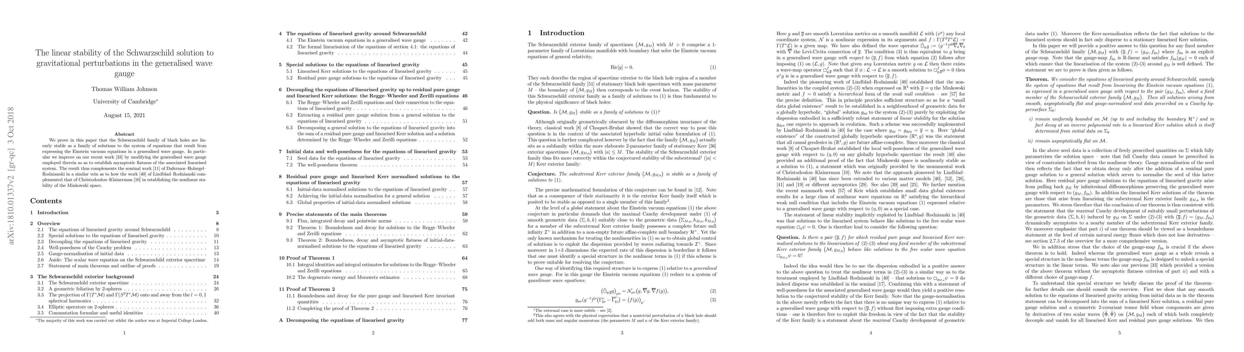 This paper proves the linear stability of the Schwarzschild family of black holes using the generalised wave gauge, improving on previous work by establishing asymptotic flatness. This complements earlier work on the nonlinear stability of Minkowski space.