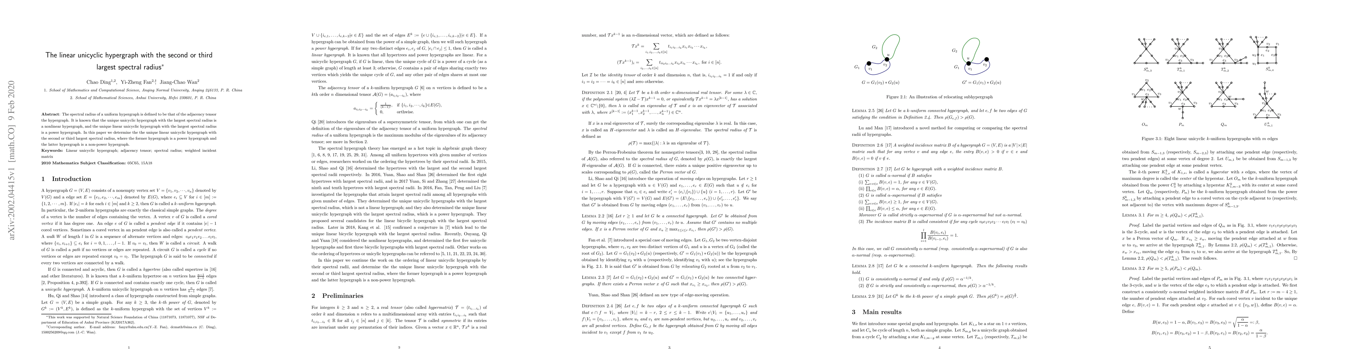 This paper identifies the unique linear unicyclic hypergraphs with the second and third largest spectral radii, revealing that the second largest is a power hypergraph while the third largest is a non-power hypergraph.
