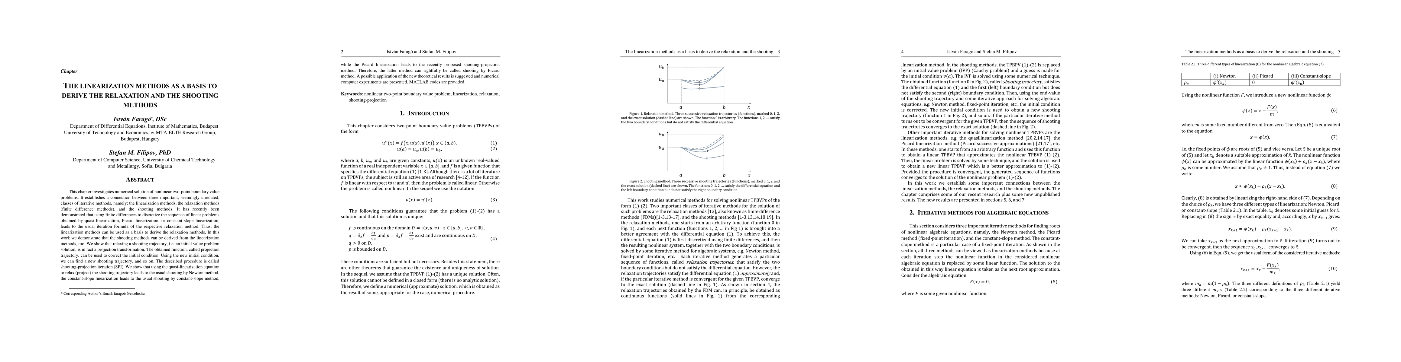This chapter investigates numerical solution of nonlinear two-point boundary value problems. It establishes a connection between three important, seemingly unrelated, classes of iterative methods, namely: the linearization methods, the relaxation methods (finite difference methods), and the shooting methods. It has recently been demonstrated that using finite differences to discretize the sequence of linear problems obtained by quasi-linearization, Picard linearization, or constant-slope linearization, leads to the usual iteration formula of the respective relaxation method. Thus, the linearization methods can be used as a basis to derive the relaxation methods. In this work we demonstrate that the shooting methods can be derived from the linearization methods, too. We show that relaxing a shooting trajectory, i.e. an initial value problem solution, is in fact a projection transformation. The obtained function, called projection trajectory, can be used to correct the initial condition. Using the new initial condition, we can find a new shooting trajectory, and so on. The described procedure is called shooting-projection iteration (SPI). We show that using the quasi-linearization equation to relax (project) the shooting trajectory leads to the usual shooting by Newton method, the constant-slope linearization leads to the usual shooting by constant-slope method, while the Picard linearization leads to the recently proposed shooting-projection method. Therefore, the latter method can rightfully be called shooting by Picard method. A possible application of the new theoretical results is suggested and numerical computer experiments are presented. MATLAB codes are provided.