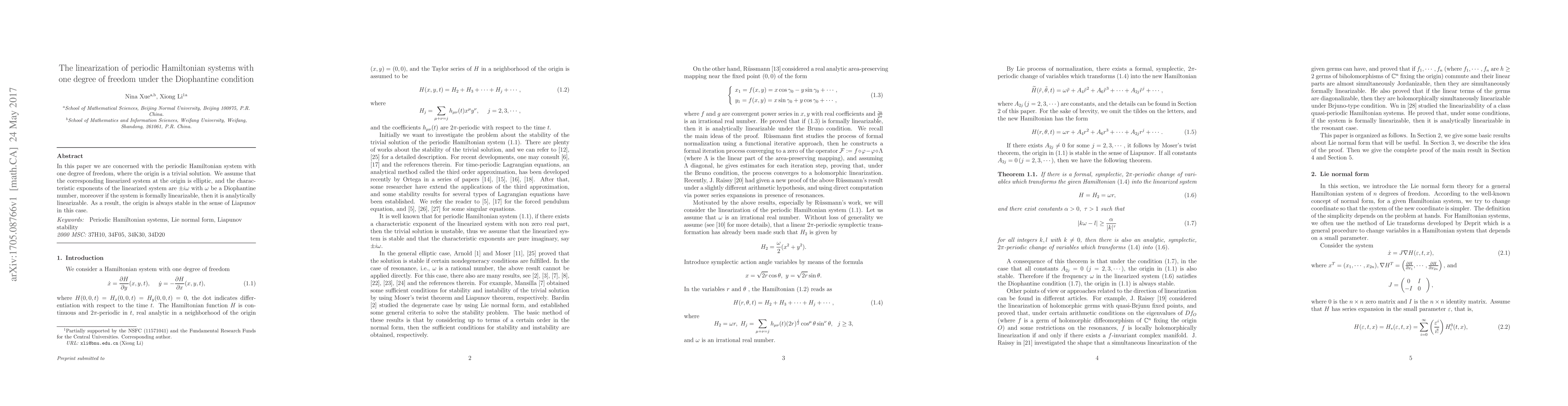 A study on one-degree-of-freedom periodic Hamiltonian systems shows that under specific conditions, the origin is always stable and can be analytically linearized.
