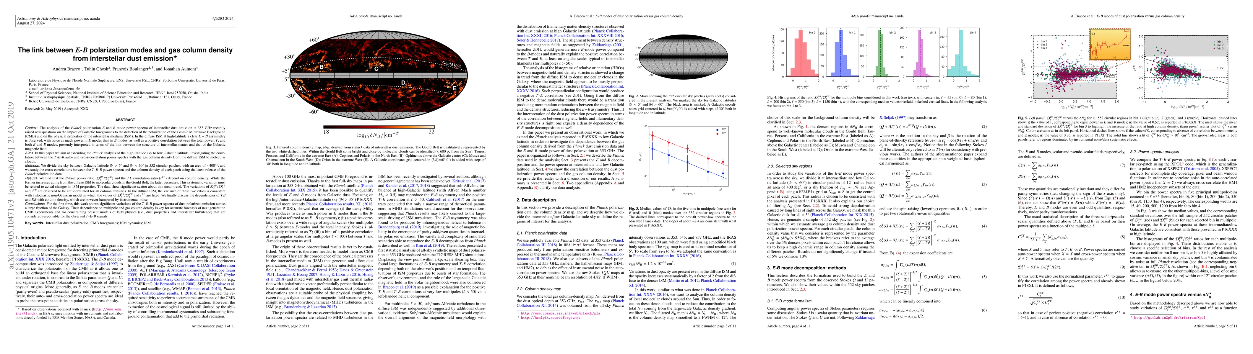 This paper investigates the correlation between E and B polarization modes in interstellar dust emission and gas column density, revealing that the B-to-E power ratio and TE correlation ratio vary systematically with column density, suggesting changes in interstellar medium properties. The study uses Planck polarization data and finds significant scatter and anti-correlation between these ratios across different ISM regions.