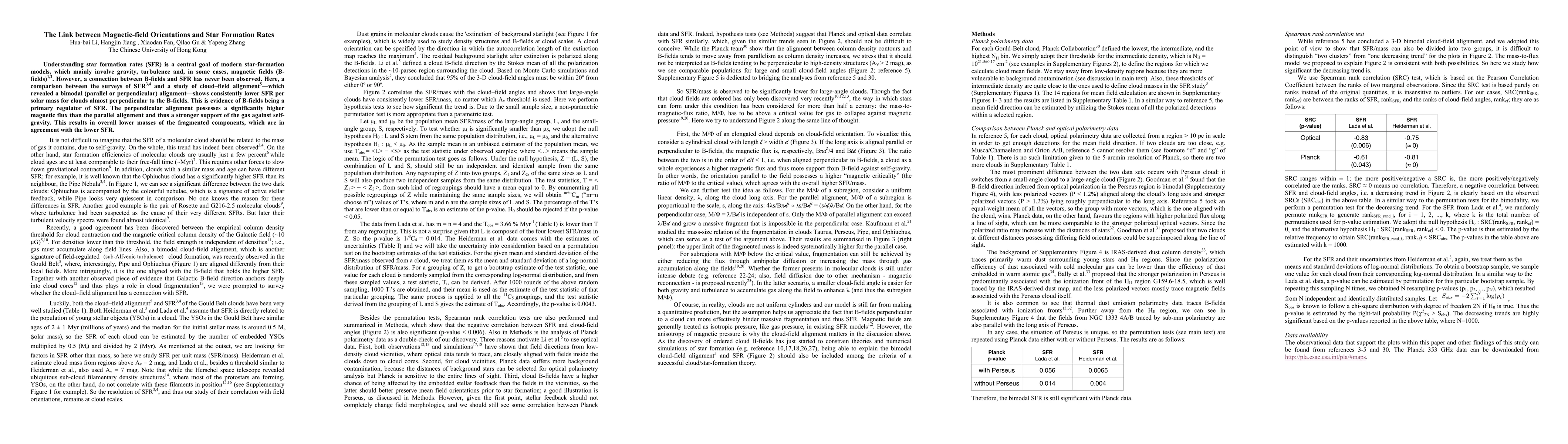 This study reveals a connection between magnetic-field orientations and star formation rates (SFR), showing lower SFR per solar mass for clouds perpendicular to magnetic fields. The perpendicular alignment indicates stronger magnetic support, resulting in lower fragmented component masses and thus lower SFR.