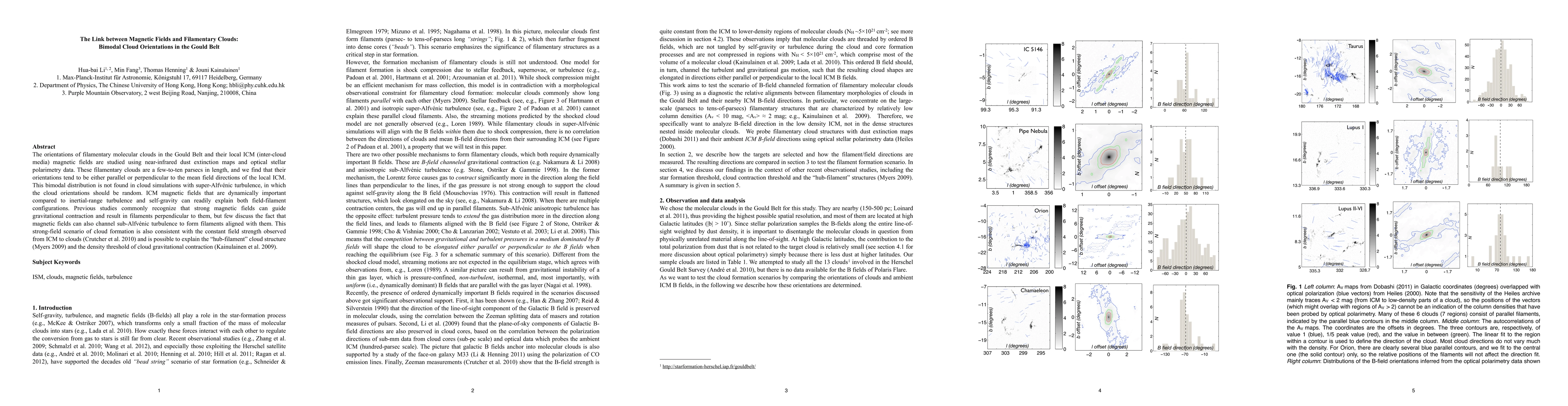 This study investigates the orientations of filamentary molecular clouds in the Gould Belt, finding they align either parallel or perpendicular to local ICM magnetic fields, suggesting a strong magnetic influence on cloud formation. This bimodal orientation pattern contrasts with simulations of super-Alfvenic turbulence, indicating that magnetic fields play a crucial role in shaping the cloud structure.