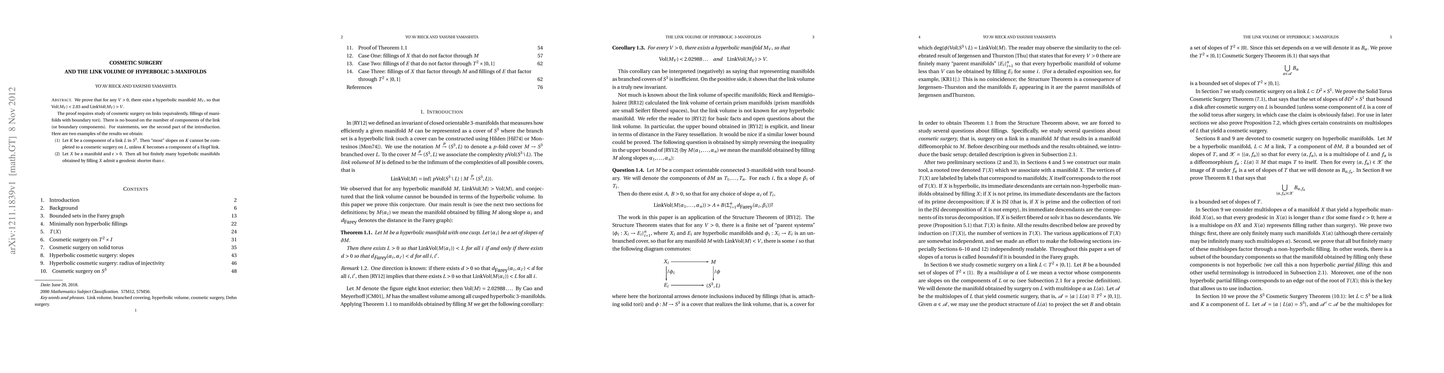 We prove that for any V>0, there exist a hyperbolic manifold M_V, so that Vol(M_V) < 2.03 and LinVol(M_V) > V. The proof requires study of cosmetic surgery on links (equivalently, fillings of manifolds with boundary tori). There is no bound on the number of components of the link (or boundary components). For statements, see the second part of the introduction. Here are two examples of the results we obtain: 1) Let K be a component of a link L in S^3. Then "most" slopes on K cannot be completed to a cosmetic surgery on L, unless K becomes a component of a Hopf link. 2) Let X be a manifold and \epsilon>0. Then all but finitely many hyperbolic manifolds obtained by filling X admit a geodesic shorter than \epsilon\ (note that this finite set may correspond to an infinitely many fillings).