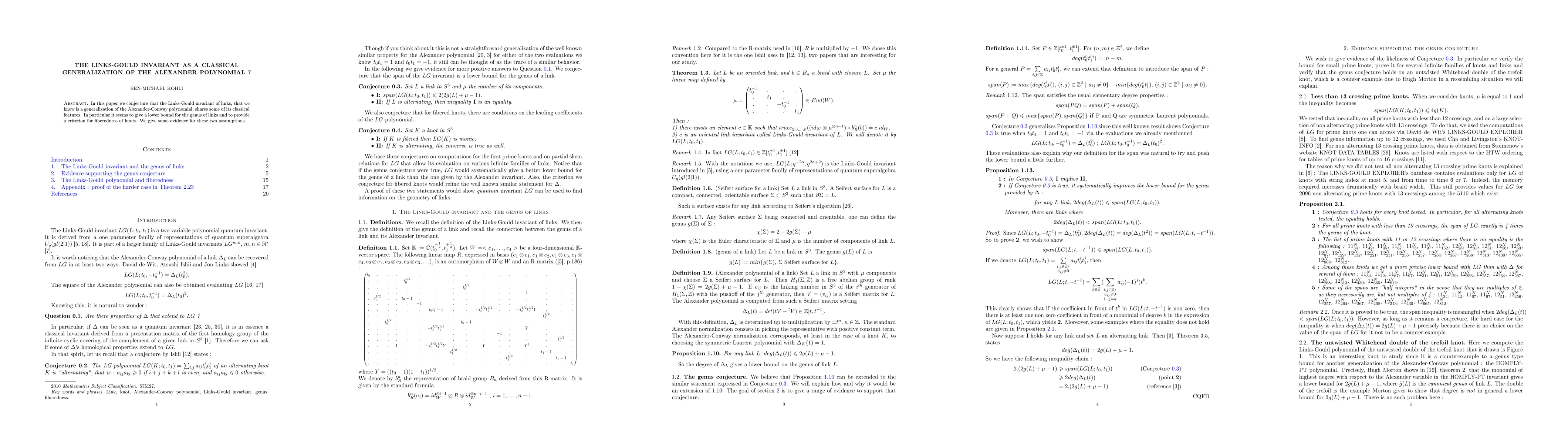 The paper conjectures properties of the Links-Gould invariant based on its known generalization of the Alexander-Conway polynomial.
