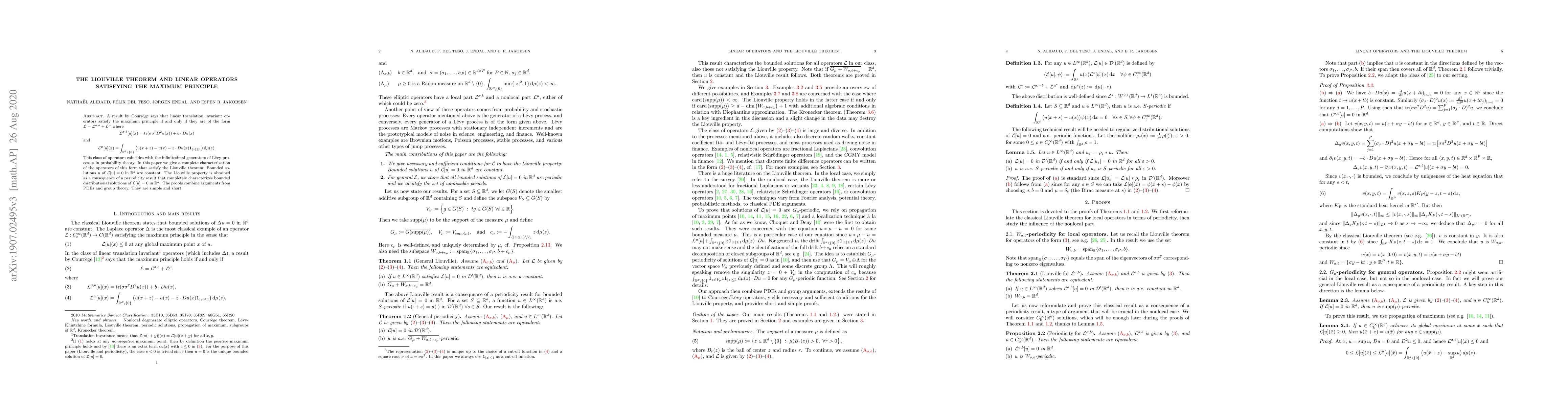 This paper characterizes translation invariant linear operators satisfying the Liouville theorem, showing that bounded solutions of $\mathcal{L}[u]=0$ in $\mathbb{R}^d$ are constant. The result follows from a periodicity theorem and combines techniques from PDE and group theory.
