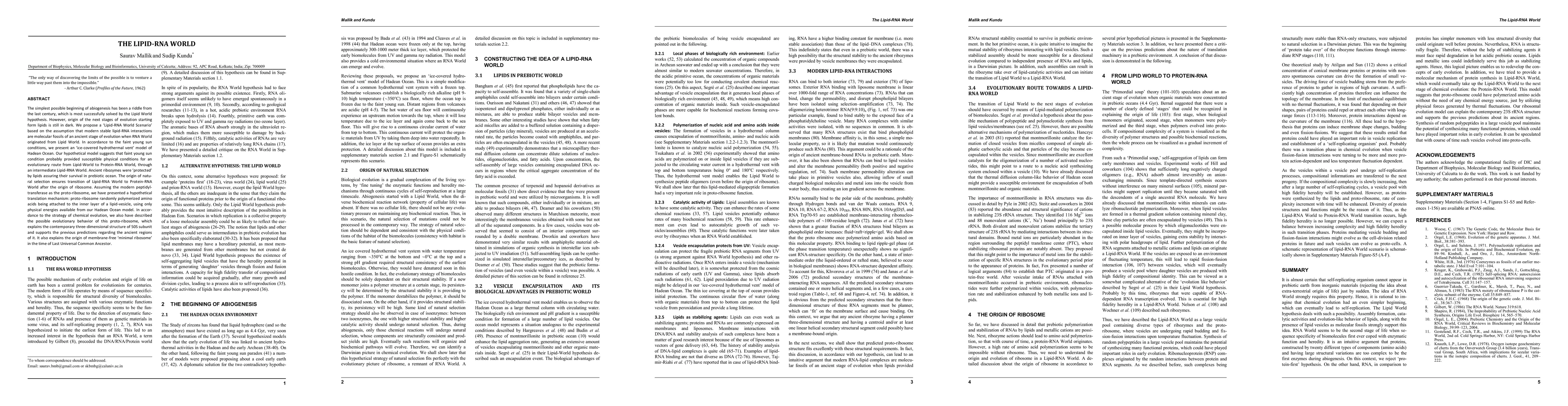 The Lipid-RNA World hypothesis proposes an evolutionary pathway from a Lipid World to a Protein-RNA World via stable lipid-RNA interactions, suggesting that ancient ribozymes were protected by lipids in an ice-covered hydrothermal vent under faint young sun conditions, leading to the origin of natural selection and the transition to the Protein-RNA World.