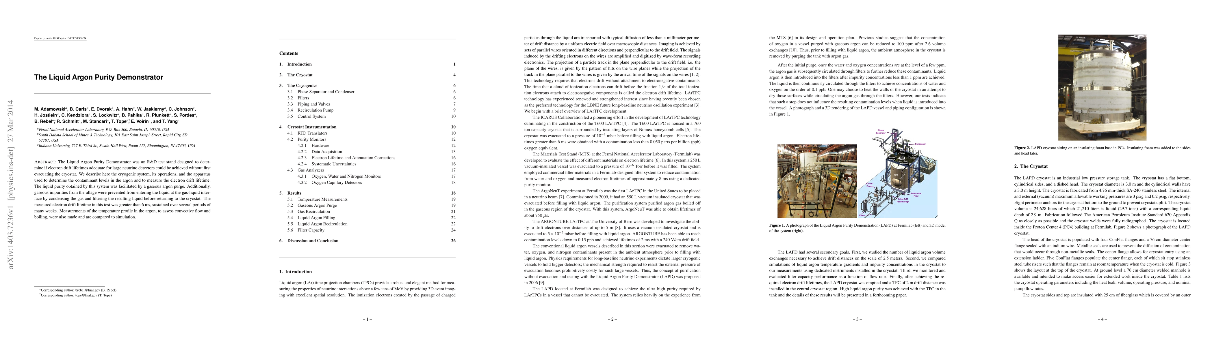 The Liquid Argon Purity Demonstrator achieved electron drift lifetimes over 6 ms without evacuating the cryostat, using a gaseous argon purge and a filtration system to maintain liquid purity and prevent impurity entry at the gas-liquid interface. Convective flow and boiling in the argon were assessed and compared to simulations.