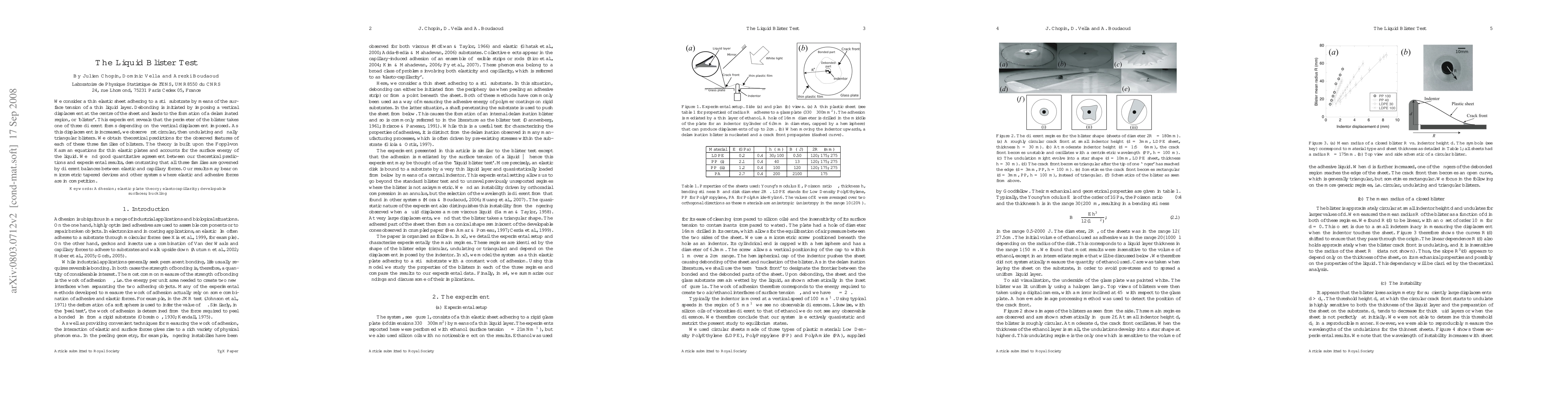 This study investigates the formation of blisters on a thin elastic sheet adhered to a substrate via a liquid layer, revealing three distinct blister shapes—circular, undulating, and triangular—as vertical displacement increases. Theoretical predictions based on Föppl-von Kármán equations and surface energy considerations match experimental results, highlighting the interplay between elastic and capillary forces.