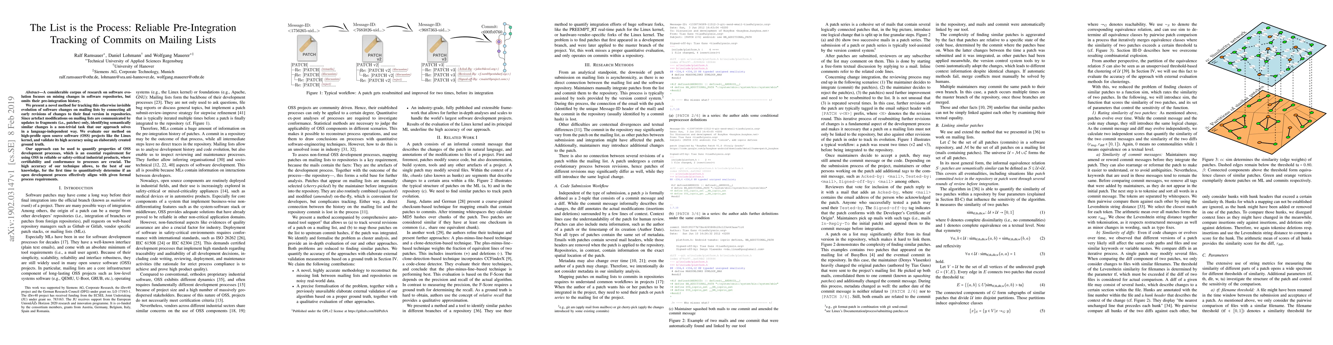 A considerable corpus of research on software evolution focuses on mining changes in software repositories, but omits their pre-integration history. We present a novel method for tracking this otherwise invisible evolution of software changes on mailing lists by connecting all early revisions of changes to their final version in repositories. Since artefact modifications on mailing lists are communicated by updates to fragments (i.e., patches) only, identifying semantically similar changes is a non-trivial task that our approach solves in a language-independent way. We evaluate our method on high-profile open source software (OSS) projects like the Linux kernel, and validate its high accuracy using an elaborately created ground truth. Our approach can be used to quantify properties of OSS development processes, which is an essential requirement for using OSS in reliable or safety-critical industrial products, where certifiability and conformance to processes are crucial. The high accuracy of our technique allows, to the best of our knowledge, for the first time to quantitatively determine if an open development process effectively aligns with given formal process requirements.