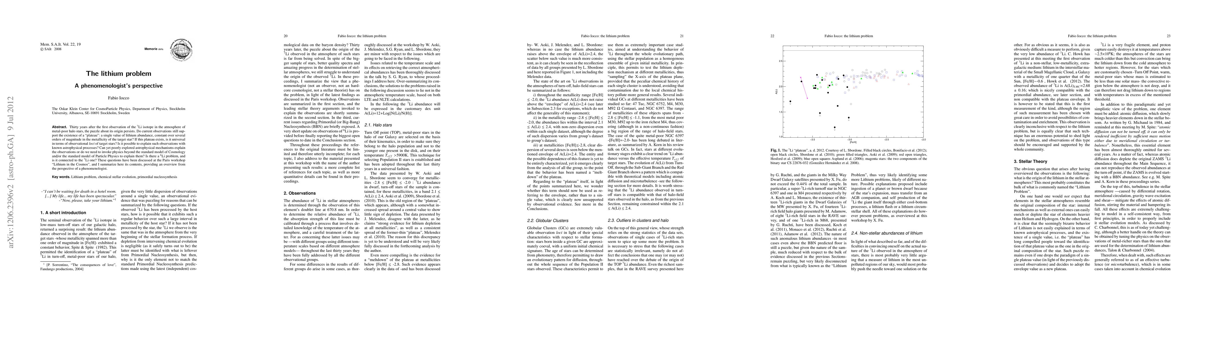 Thirty years after the first observation of the 7Li isotope in the atmosphere of metal-poor halo stars, the puzzle about its origin persists. Do current observations still support the existence of a "plateau": a single value of lithium abundance, constant over several orders of magnitude in the metallicity of the target star? If this plateau exists, is it universal in terms of observational loci of target stars? Is it possible to explain such observations with known astrophysical processes? Can yet poorly explored astrophysical mechanisms explain the observations or do we need to invoke physics beyond the standard model of Cosmology and/or the standard model of Particle Physics to explain them? Is there a 6Li problem, and is it connected to the 7Li one? These questions have been discussed at the Paris workshop Lithium in the Cosmos, and I summarize here its contents, providing an overview from the perspective of a phenomenologist.