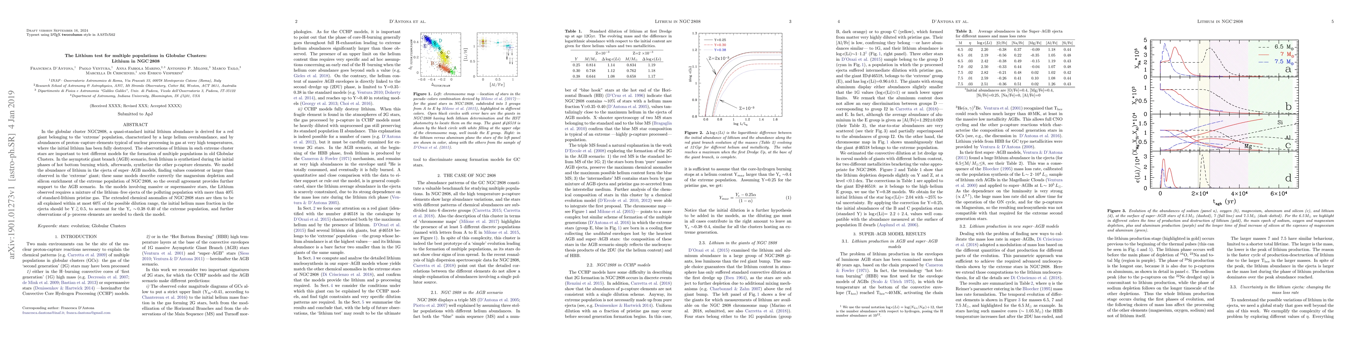 This paper investigates the lithium abundance in NGC 2808's extreme population, finding quasi-standard initial lithium in a red giant despite the cluster's high helium overabundance. The study supports the AGB scenario for multiple population formation, as superAGB models predict lithium levels consistent with observations.